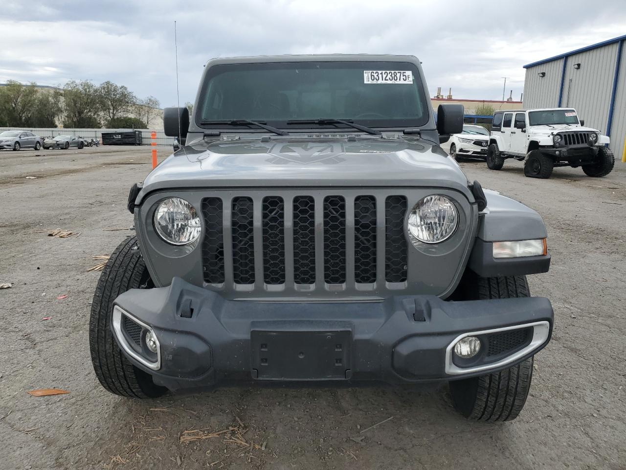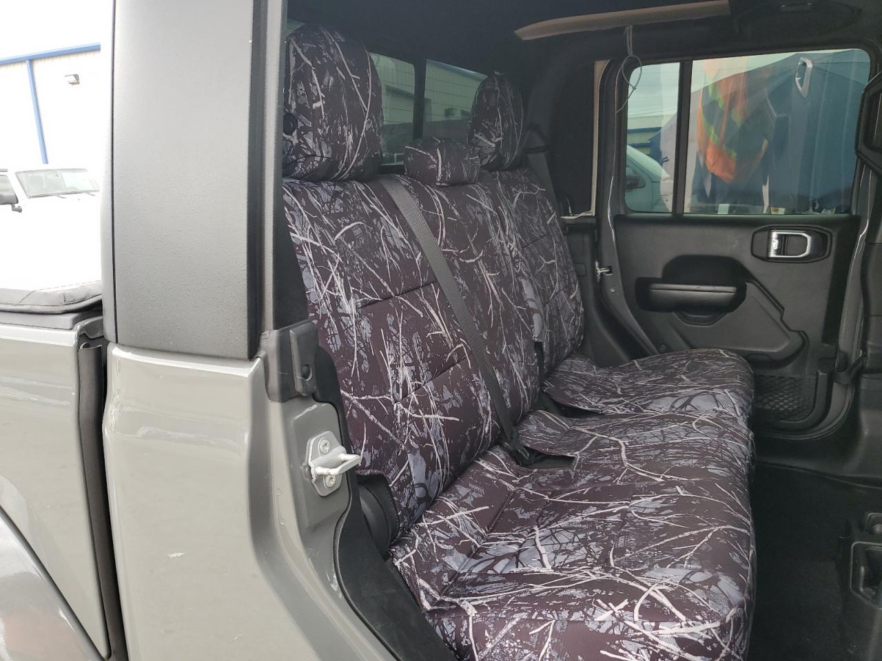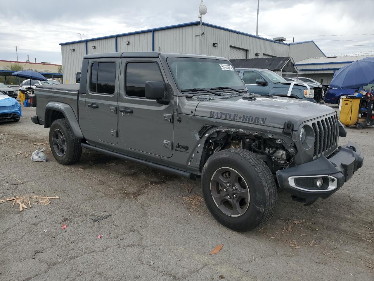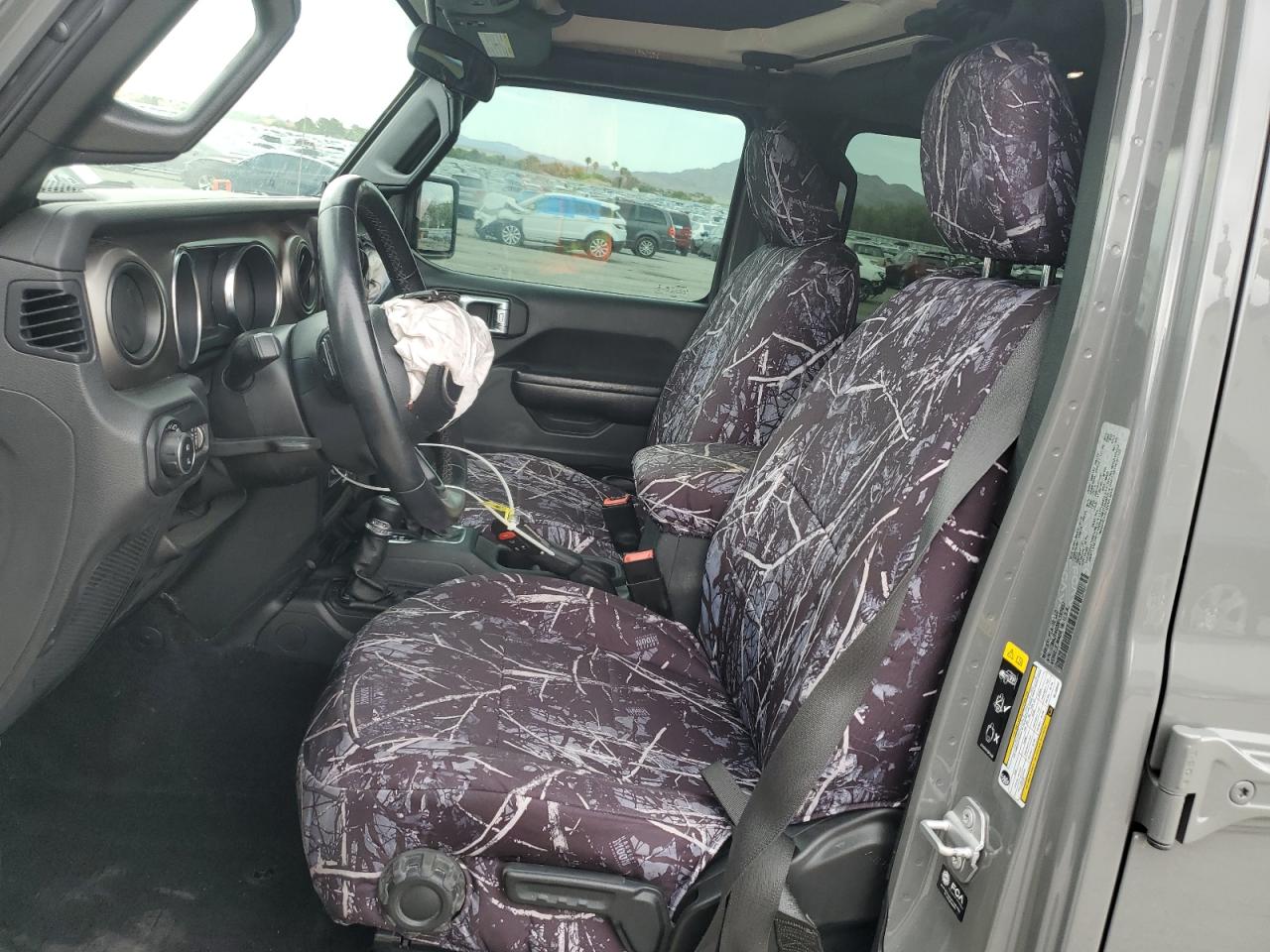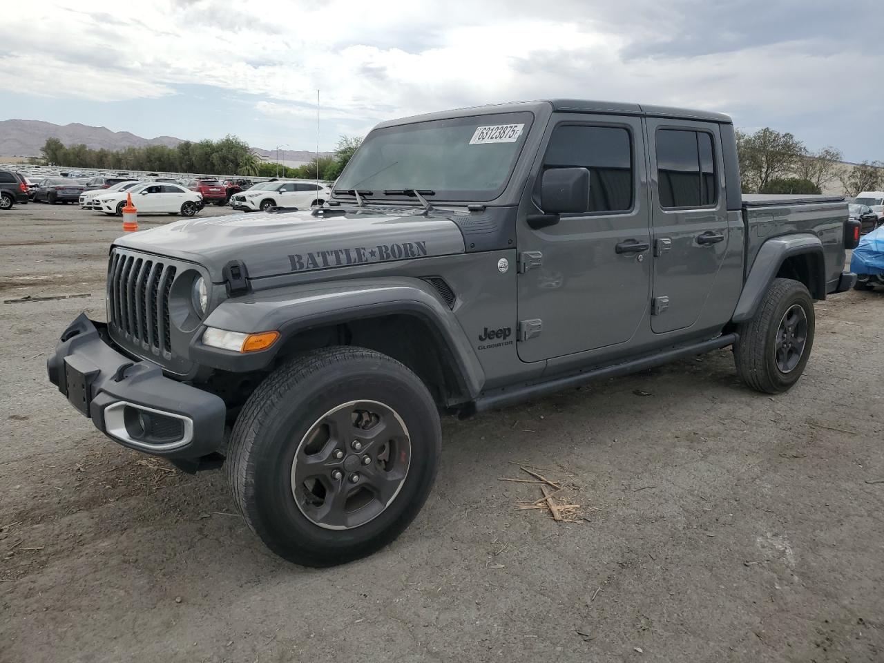 FairThe 2021 JEEP GLADIATOR in gray presents with significant front-end damage, categorized as Body damage. The exterior shows moderate visible damage, particularly to the front. The interior condition appears to be good despite the accident with deployed airbags. Run & Drive is verified. This vehicle requires repairs to the front end. The wheels and glass appear to be intact.