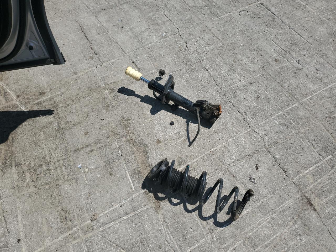 Severe front-end collision damage. The front bumper, hood, and front lights are heavily damaged. The front wheels also have sustained damage, indicating the potential need for extensive repair or parts replacement. The airbags have deployed, and interior components may be damaged as well.