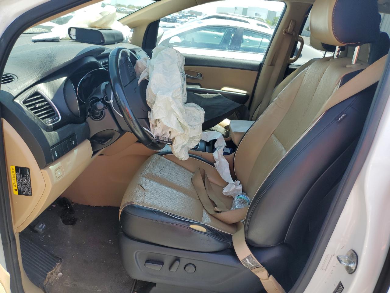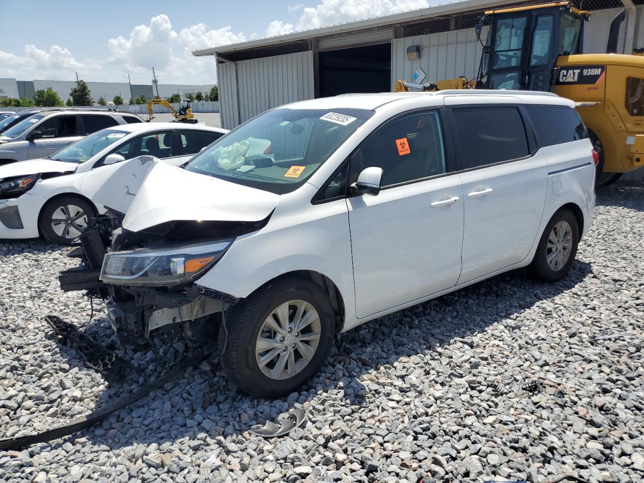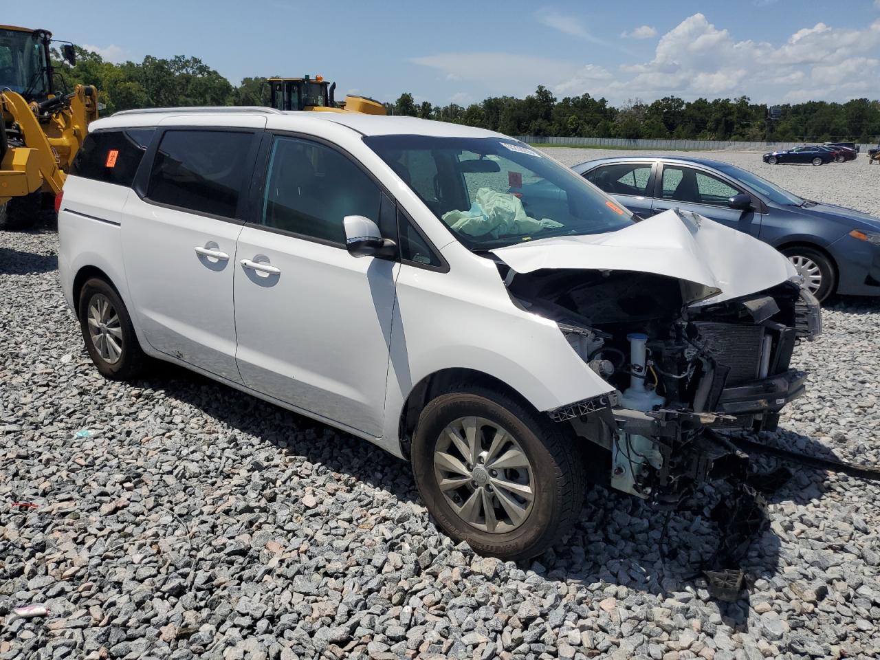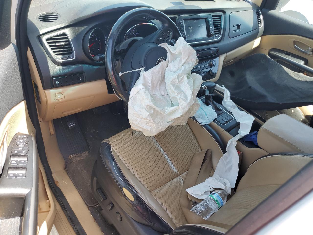 Fair2017 KIA SEDONA LX, white, start code DEFAULT. The vehicle sustained significant front-end damage. The front bumper, hood, grille, and headlights are severely damaged. The airbags have deployed. The interior shows signs of damage. The wheels appear to be intact. The vehicle's overall condition is poor and requires significant repair.