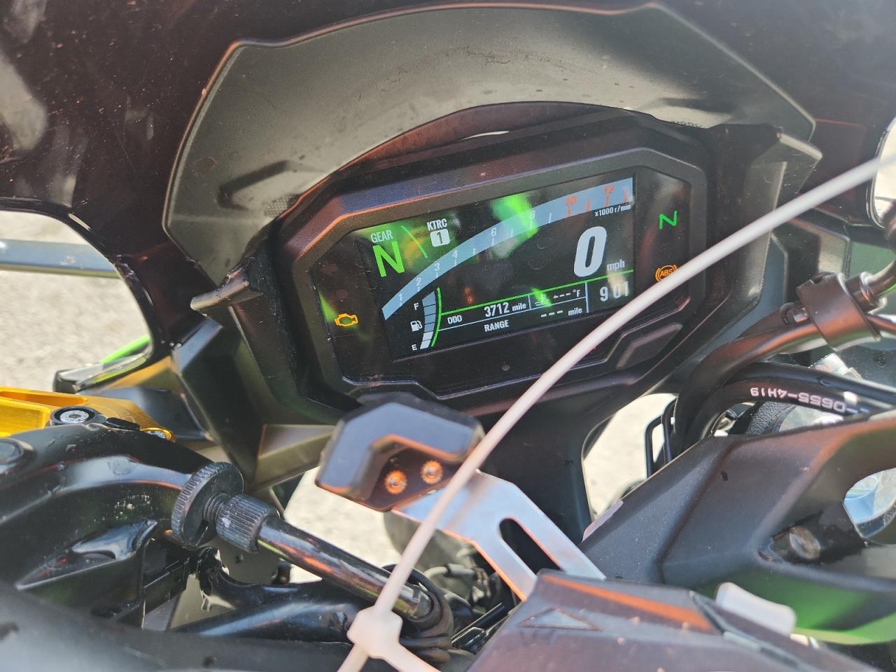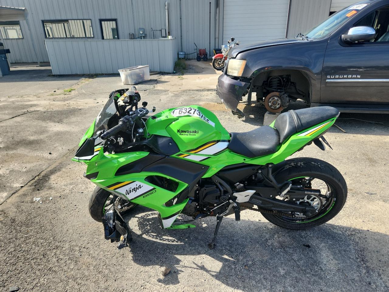 The KAWASAKI EX650 P 2025 sustained front-end damage. The front of the motorcycle shows the most significant damage.