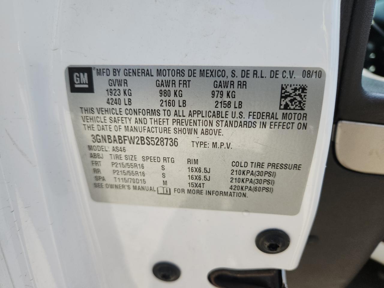 FairThe 2011 CHEVROLET HHR LT, white in color, exhibits side damage and is a Run & Drive Verified vehicle. The car's exterior shows noticeable side damage, body panels appear impacted and interior condition is not in a great condition, with visible wear and tear, making it a project car. The wheels and lights appear to be in acceptable condition, and the glass seems intact. The car is drivable.