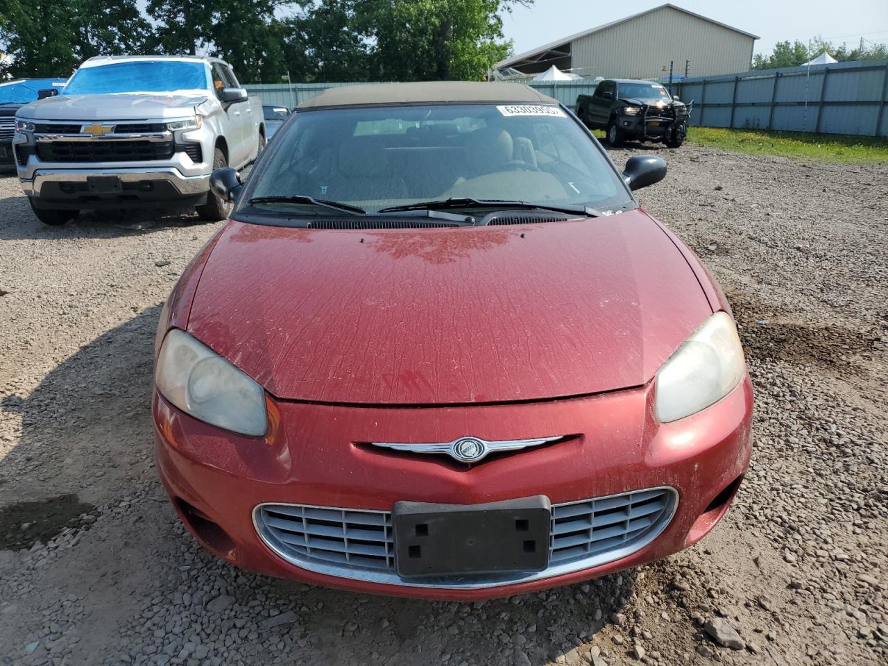 The 2002 CHRYSLER SEBRING GT in red exhibits normal wear and tear with no major secondary damage. It's a Run & Drive Verified vehicle. The vehicle's exterior shows minor/moderate visible damage. The interior has minor visible damage. The car is drivable but may require some repairs.
