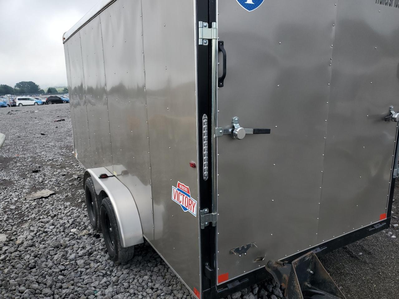 GoodThe 2024 INTERSTATE UNKNOWN, a gray trailer, shows REAR END damage. Secondary damage is not present. The trailer's body panels show damage, suggesting a Body damage category. The interior shows signs of damage, possibly requiring repairs. Overall, the trailer is in Fair condition, potentially drivable after some repairs.