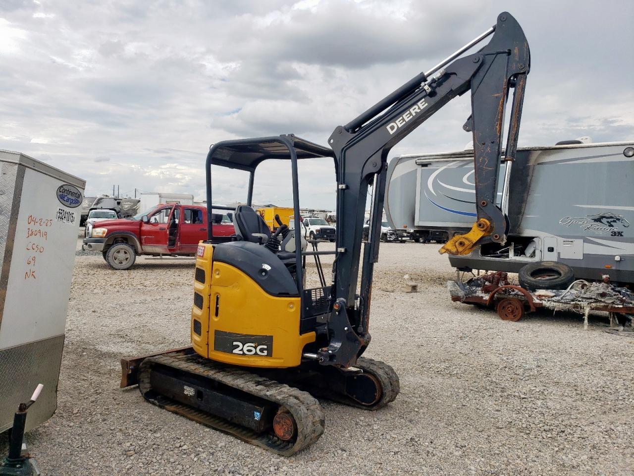 GoodThis is a 2019 John Deere 26G mini excavator. The primary damage is normal wear, with no secondary damage noted. The color is yellow, and it's verified to run and drive.