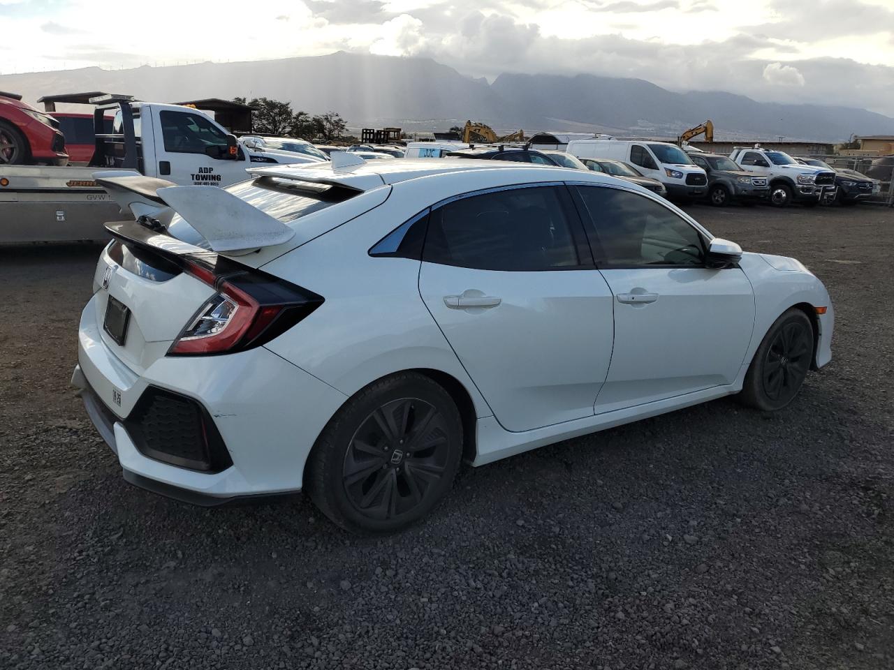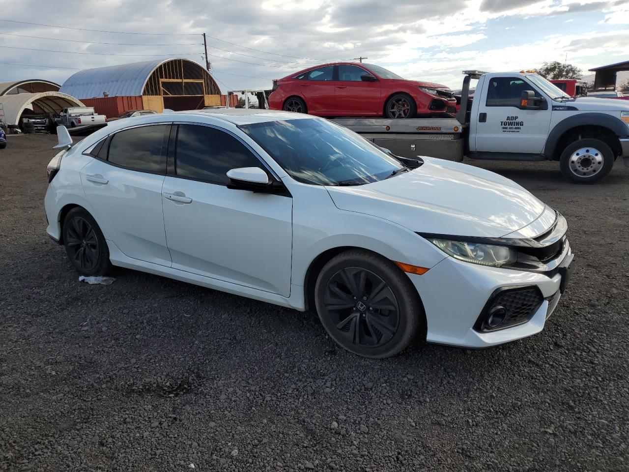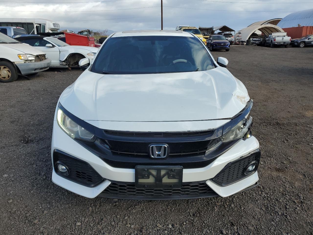 FairThe white 2018 Honda Civic EX presents with significant damage, primarily to the front end and side. The vehicle starts, but the extensive body damage suggests a need for considerable repair. The interior shows signs of damage, including deployed airbags. The wheels appear intact, but the overall condition is poor.