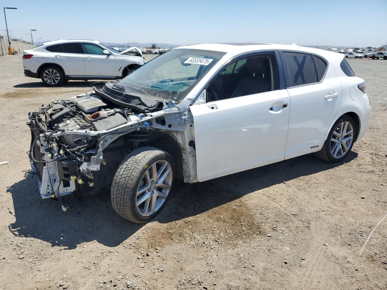 FairThis 2017 Lexus CT 200h is white and has sustained significant front-end damage. The vehicle is listed with a 'Run & Drive Verified' start code. The primary damage is to the front end, with no secondary damages. The car's exterior shows moderate visible damage. The interior condition is good, showing minor wear and tear. The car is drivable despite the damage.