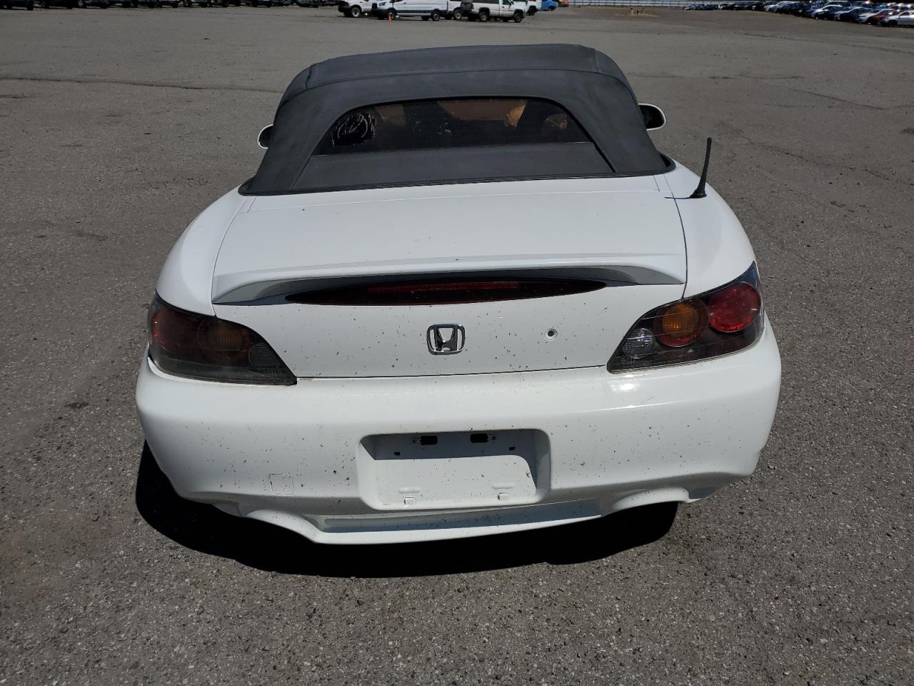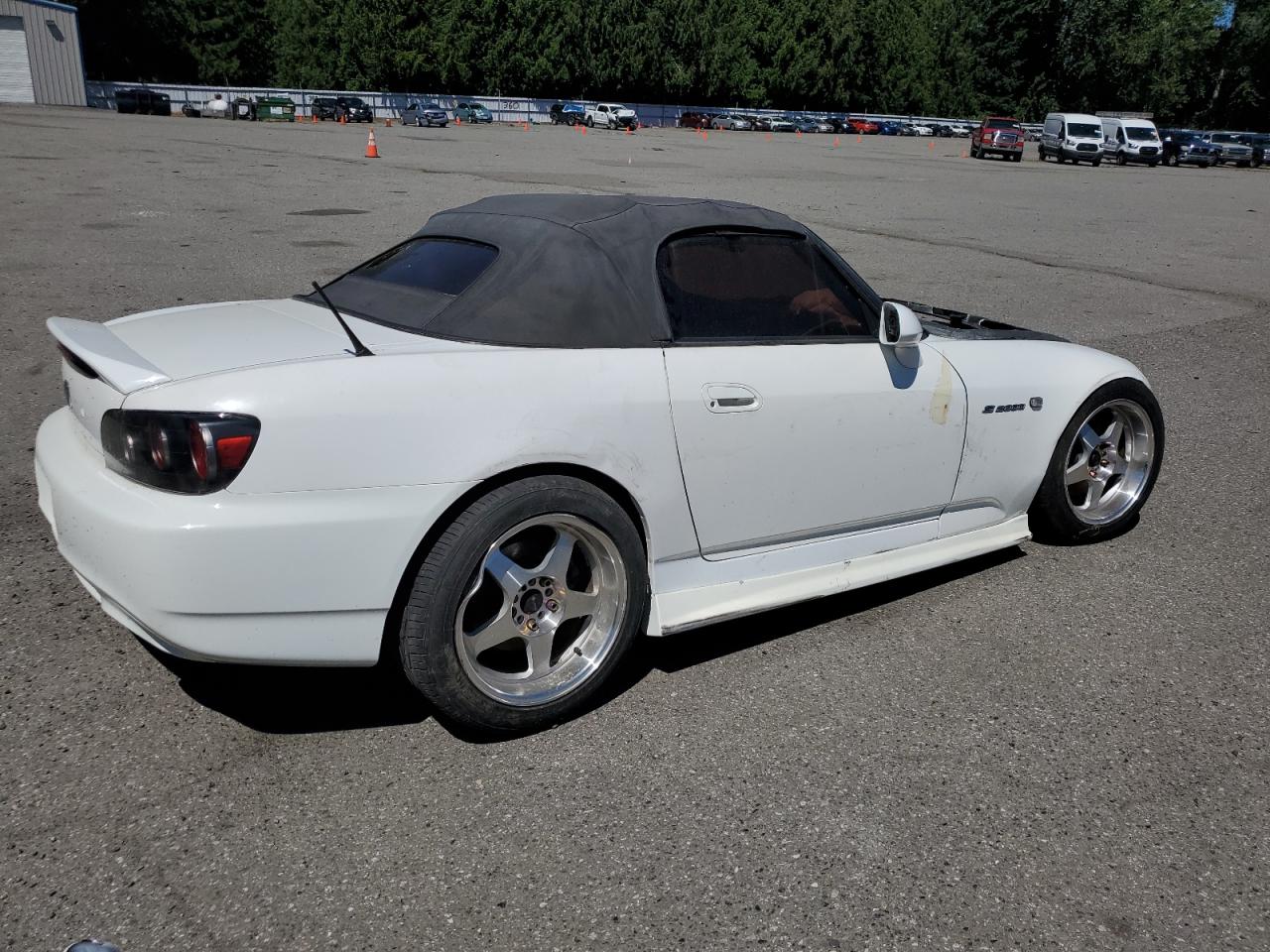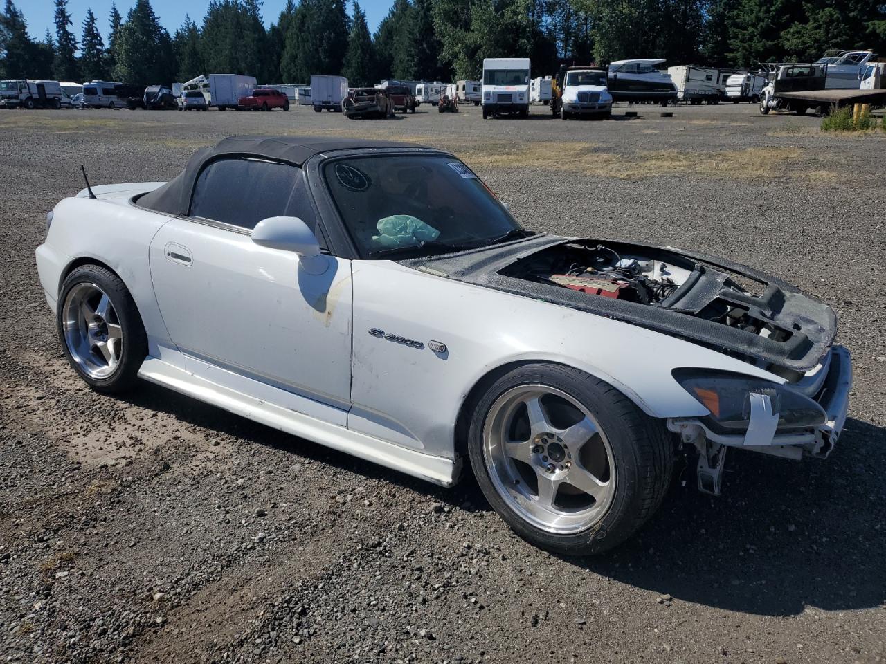 Fair2005 Honda S2000 with front and rear end damage. White exterior. Interior damage includes deployed airbags. The vehicle's front end is heavily damaged, including the hood, fenders, and bumper. The rear end also shows significant damage. Wheels appear to be intact. The interior has damage, especially to the dashboard and seats.