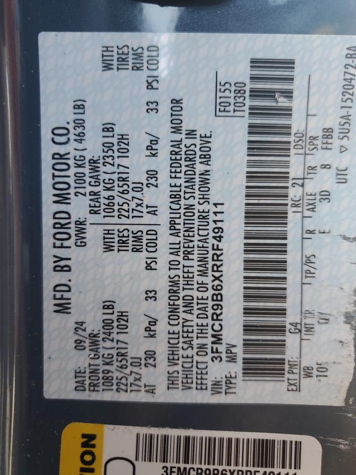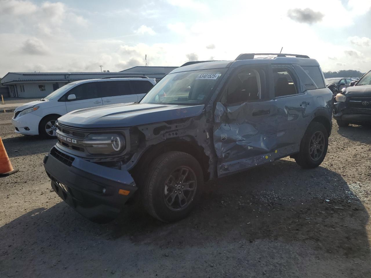 FairThis is a 2024 Ford Bronco Sport, with significant damage primarily to the side. The vehicle is blue and shows signs of a collision. It has a starting code indicating it is run and drive verified. The damage includes extensive body panel damage, possibly affecting the frame. The vehicle's interior also shows damage.