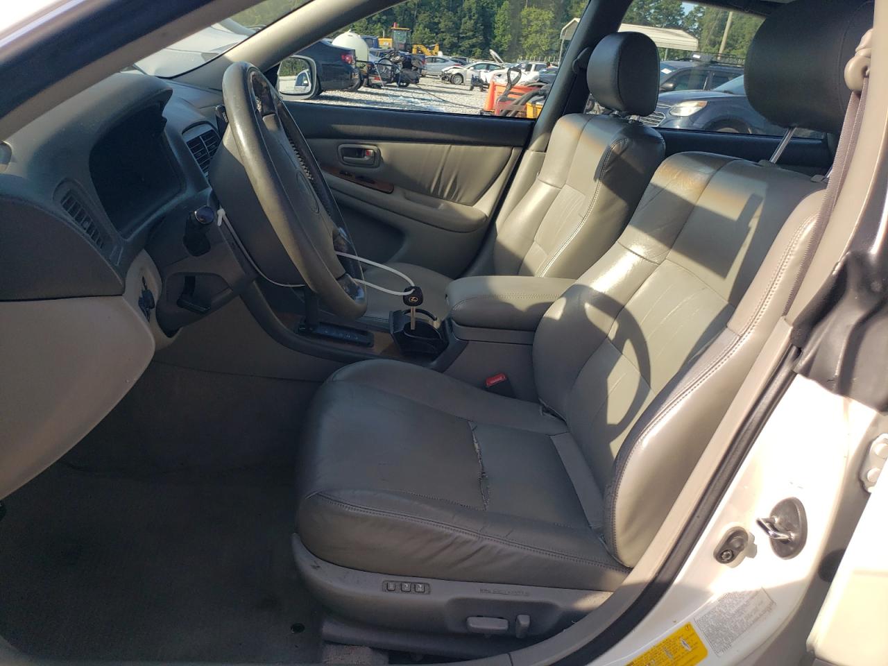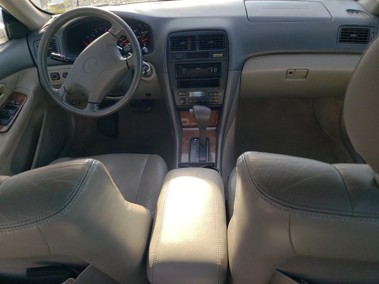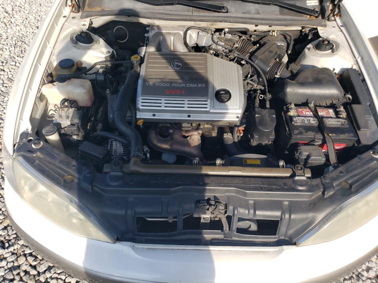 Fair1999 Lexus ES 300. This white sedan exhibits rear-end damage, classified as Body damage, indicating impact to body panels. It is a Run & Drive Verified vehicle. The interior shows wear and tear, but remains in a fair condition. The exterior condition reflects moderate damage, requiring some repairs to make it a good car. The car is drivable. The wheels appear intact, and the lights and glasses seem to be in good condition.