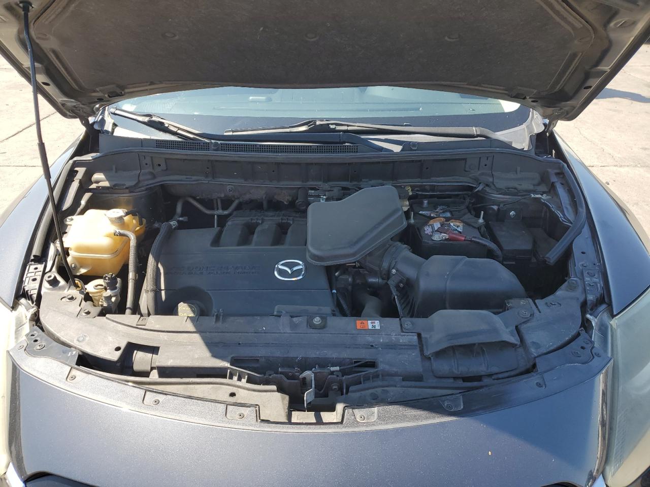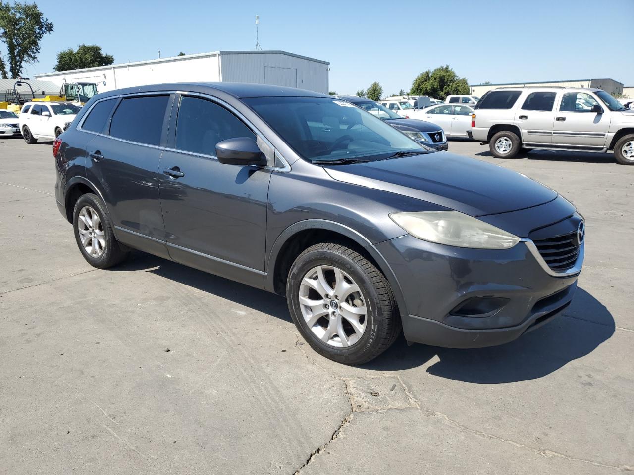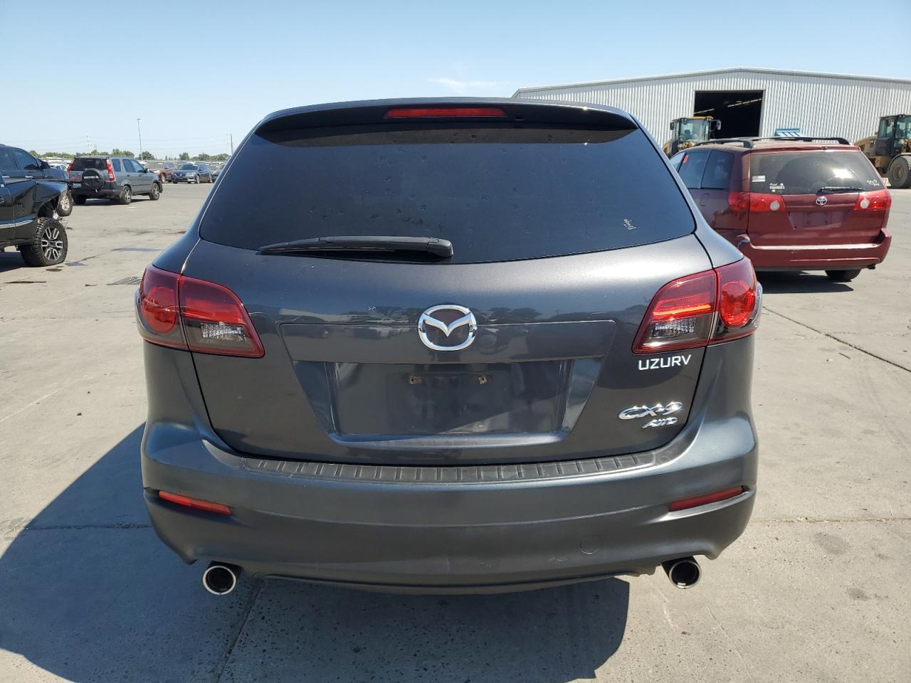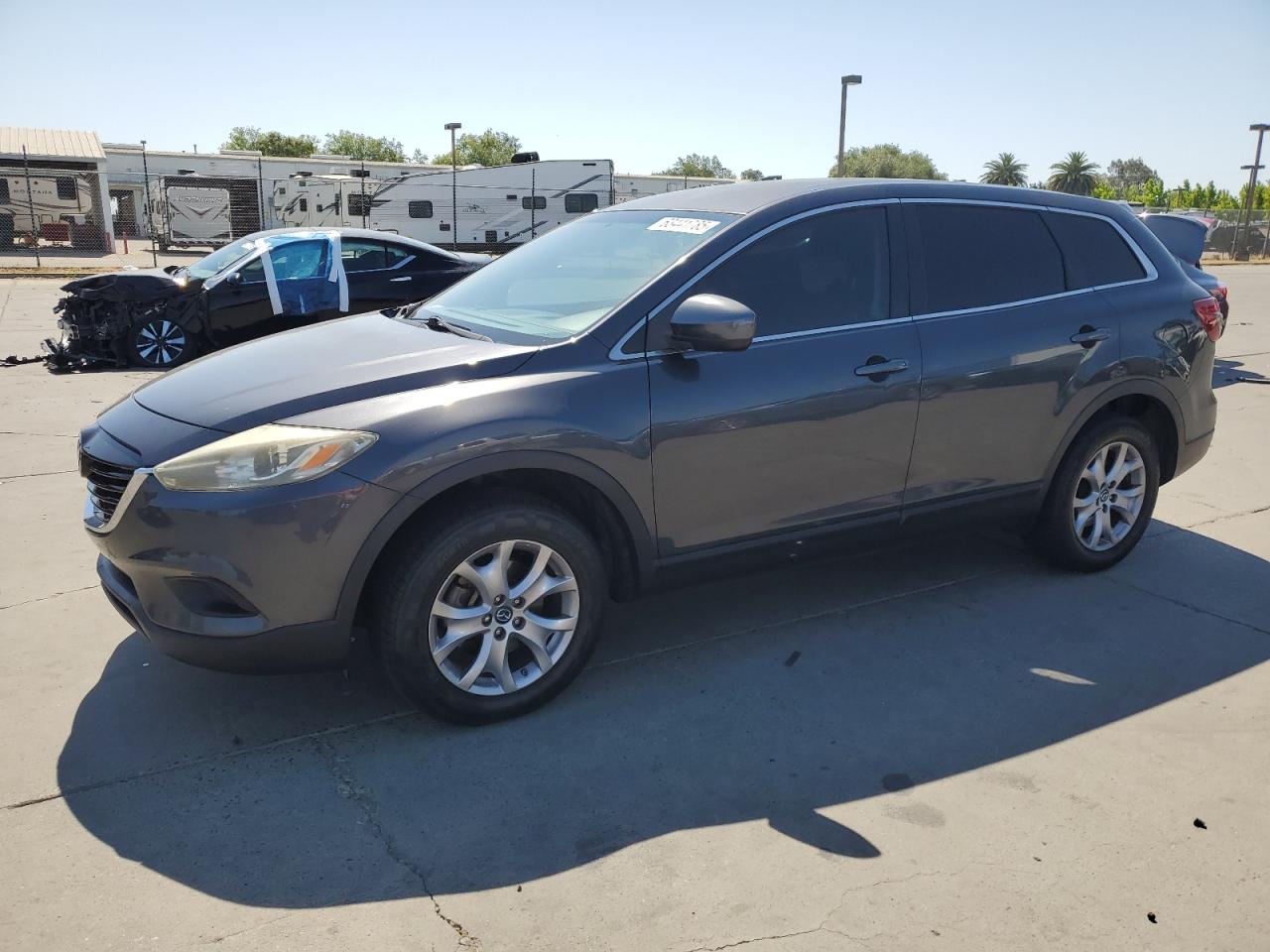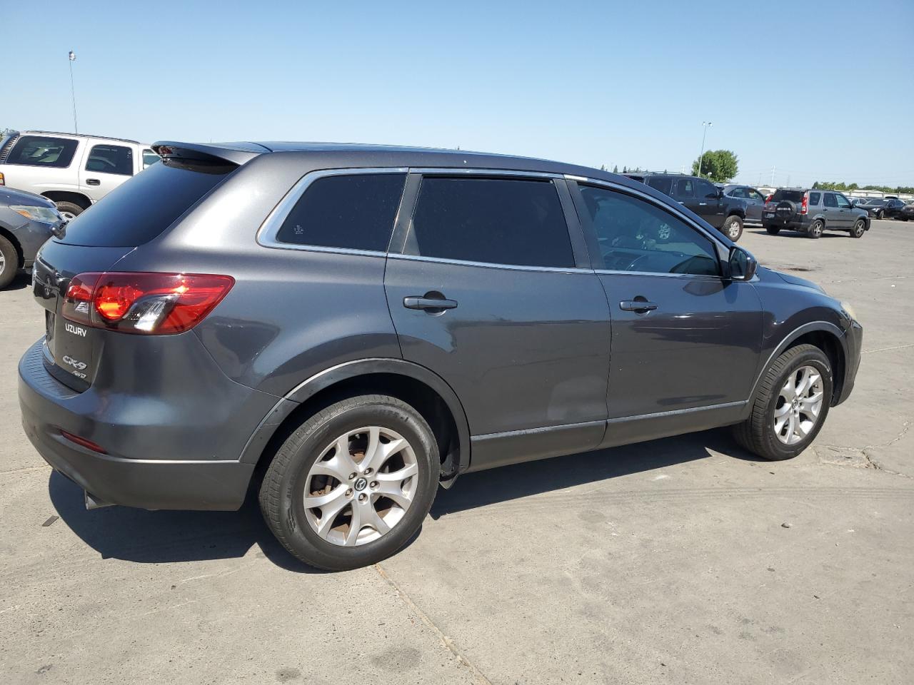 GoodThe 2015 MAZDA CX-9 SPORT, a gray SUV, presents with a 'BURN - INTERIOR' damage. The exterior shows minor/moderate visible damage, and the interior condition is Fair, while the overall condition is Fair. The vehicle's wheels and lights appear to be in decent condition. The vehicle is drivable.