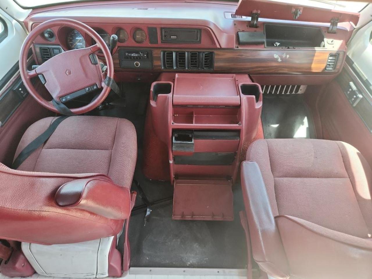 FairThis is a white 1994 Dodge Ram Van B2 with rear-end and undercarriage damage. The vehicle appears to be in a state requiring repair. The interior shows signs of wear and tear. The vehicle's rear end exhibits significant damage, with apparent body panel and structural issues. The undercarriage also presents visible damage. The wheels, lights, and glasses appear to have some wear. The interior has visible wear. The airbags status is not visible in the images. Damaged parts may include body panels, and undercarriage components.