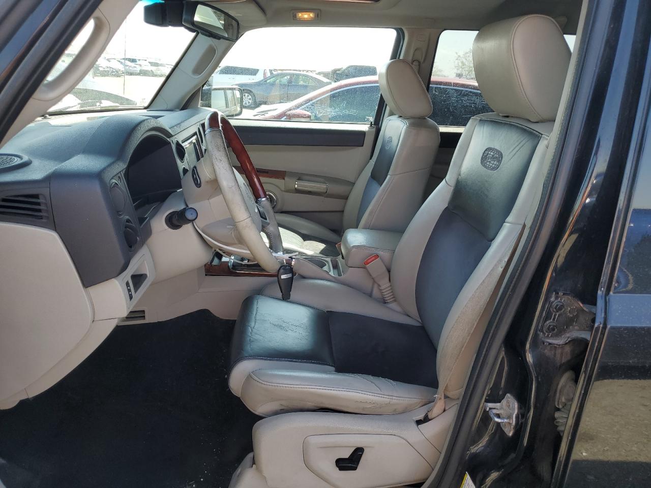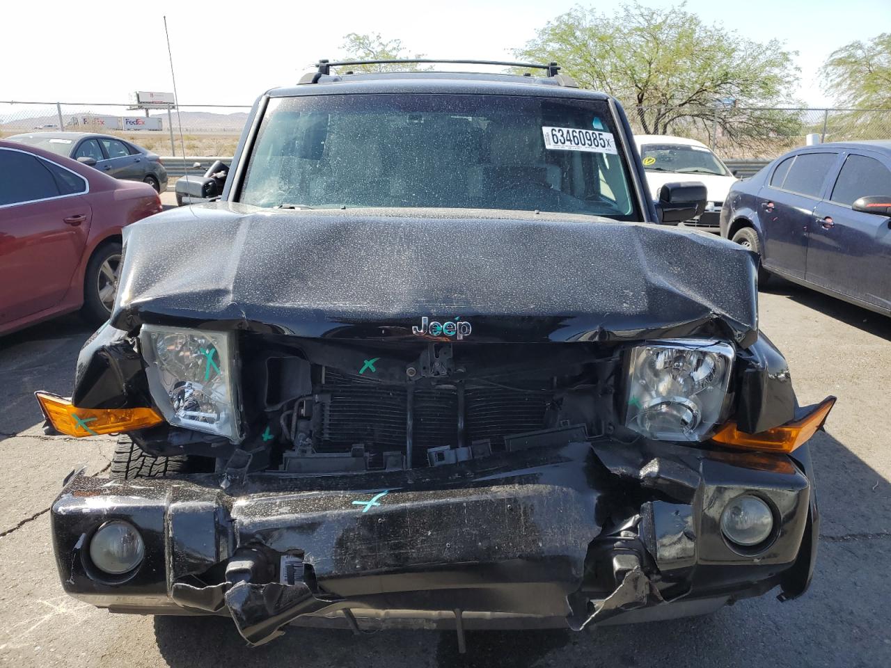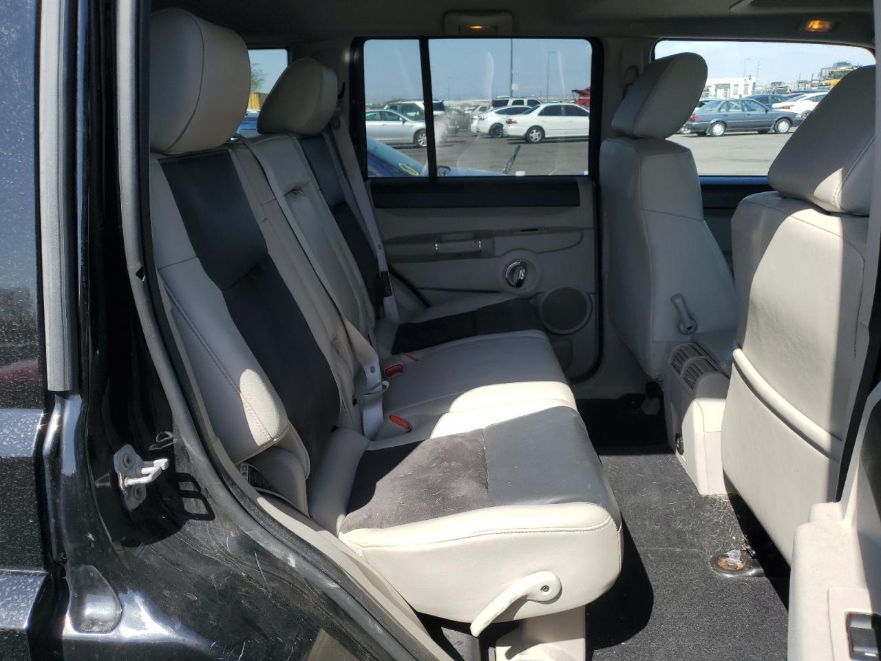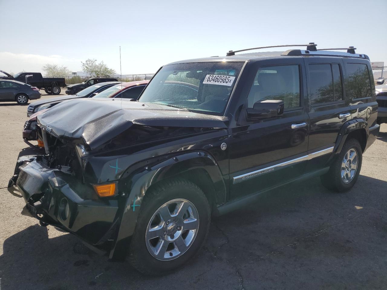 Fair2008 Jeep Commander, black exterior. Primary damage is front-end collision with significant damage to the front bumper, hood, and front panels. The vehicle is drivable. Interior appears to be in good condition with some wear consistent with age and mileage.