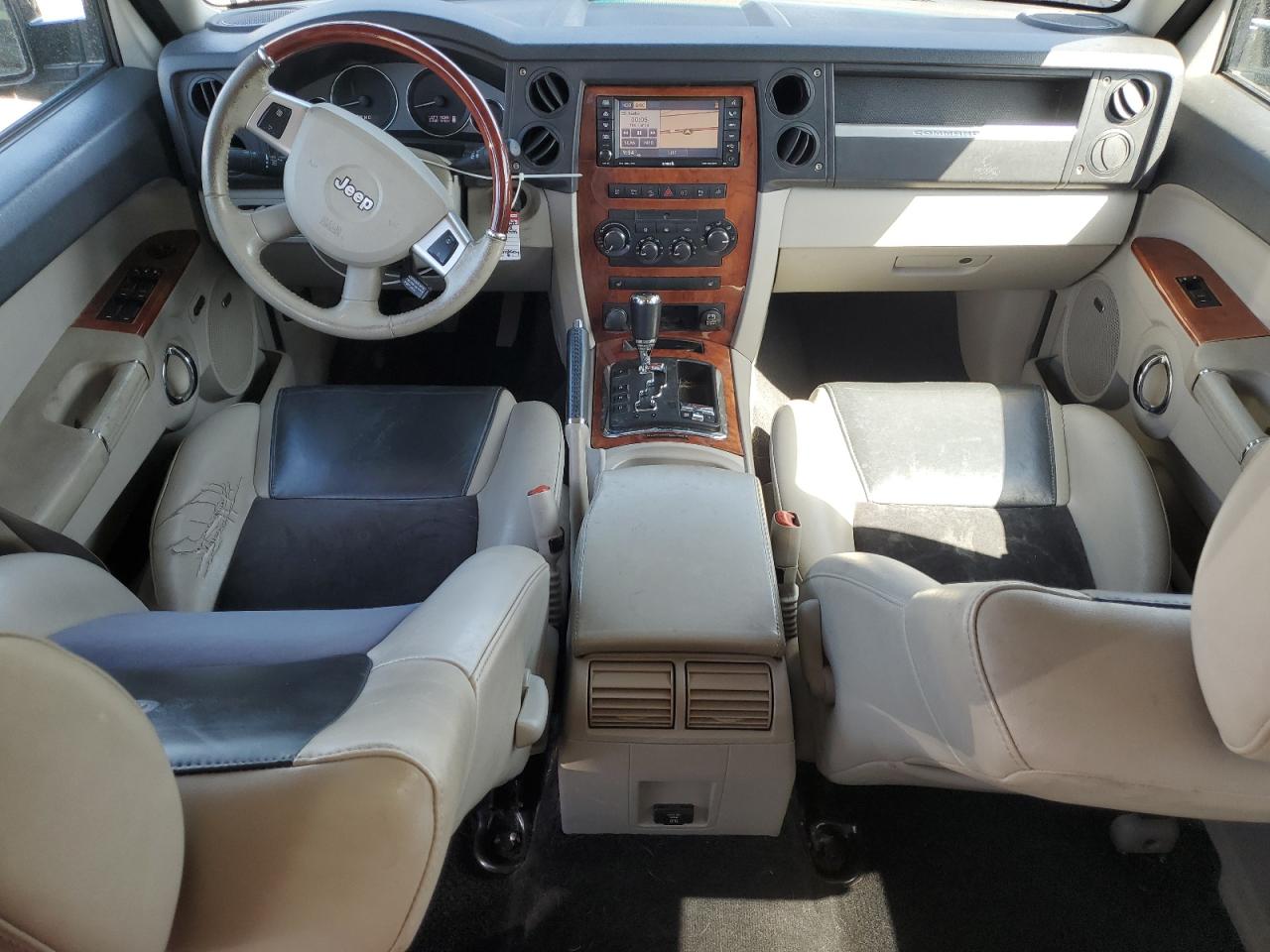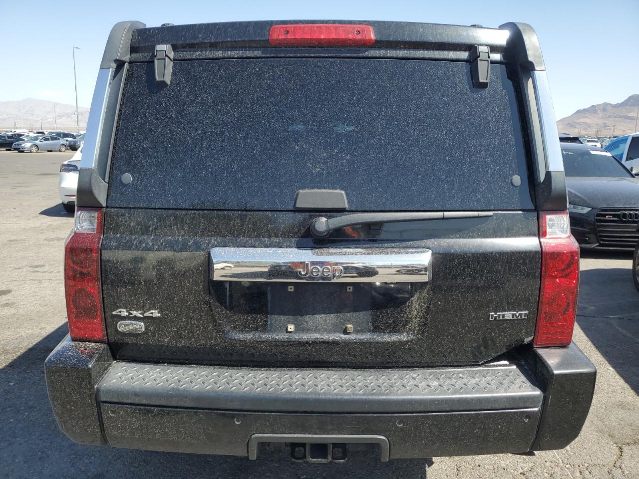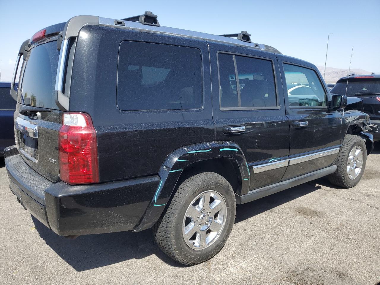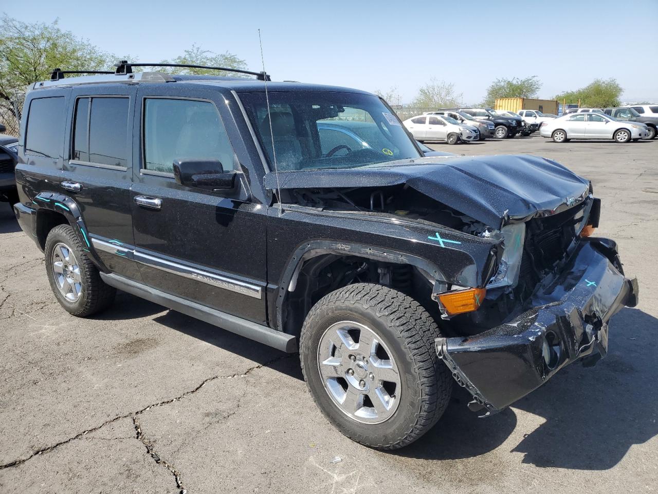 Fair2008 Jeep Commander, black exterior. Primary damage is front-end collision with significant damage to the front bumper, hood, and front panels. The vehicle is drivable. Interior appears to be in good condition with some wear consistent with age and mileage.