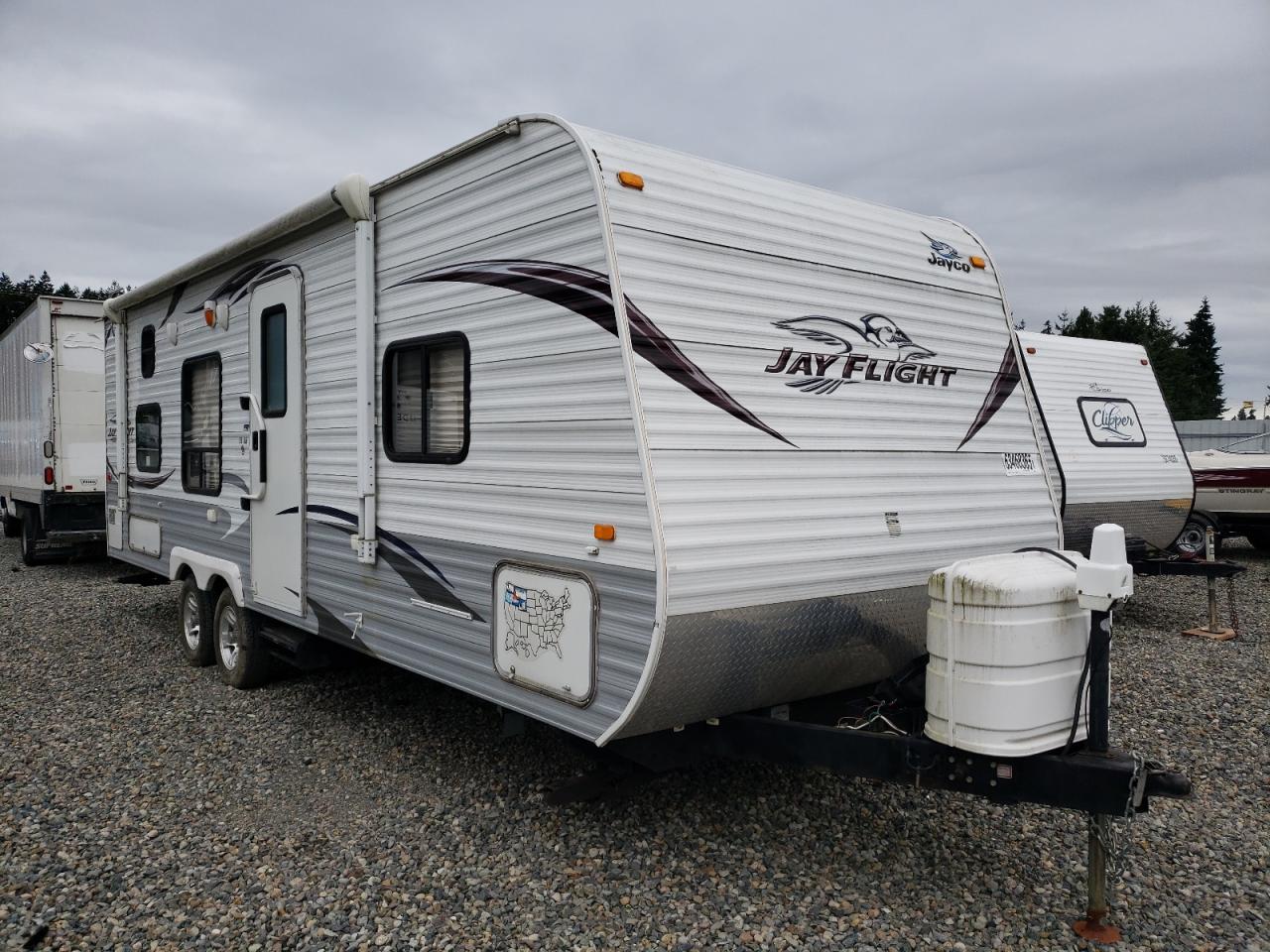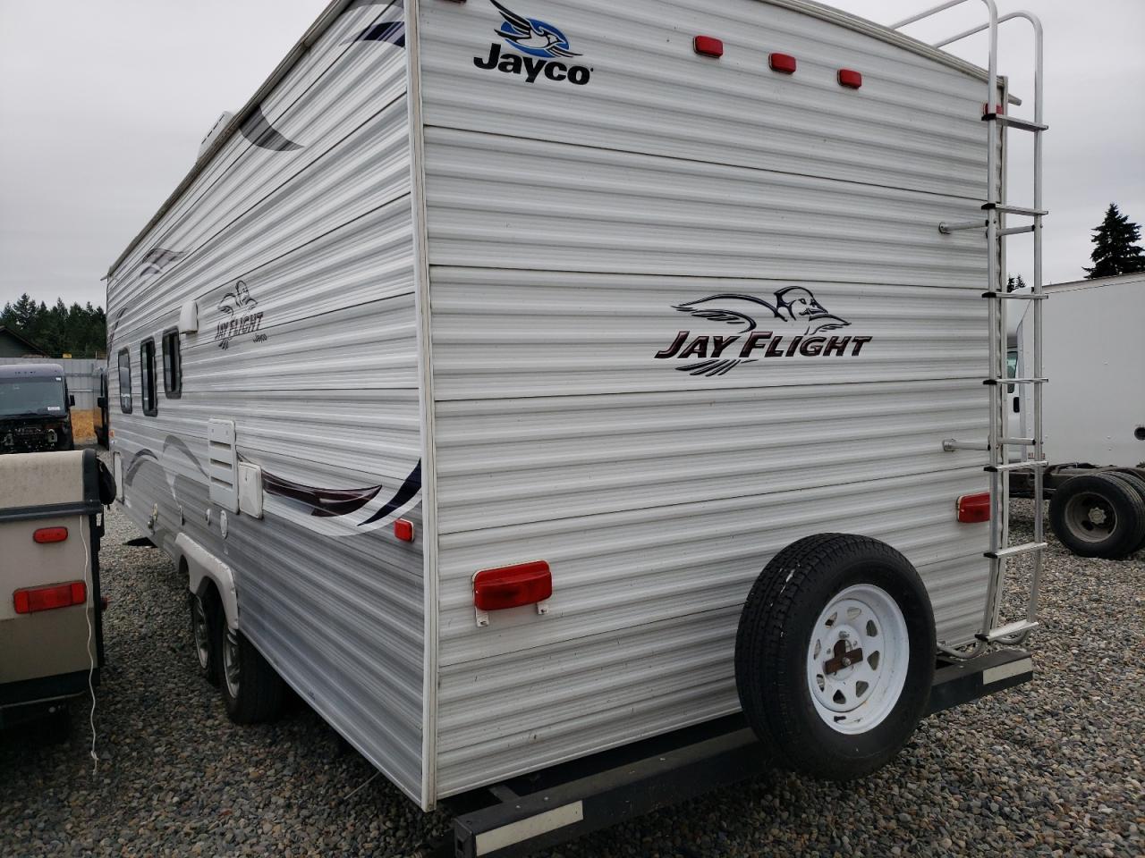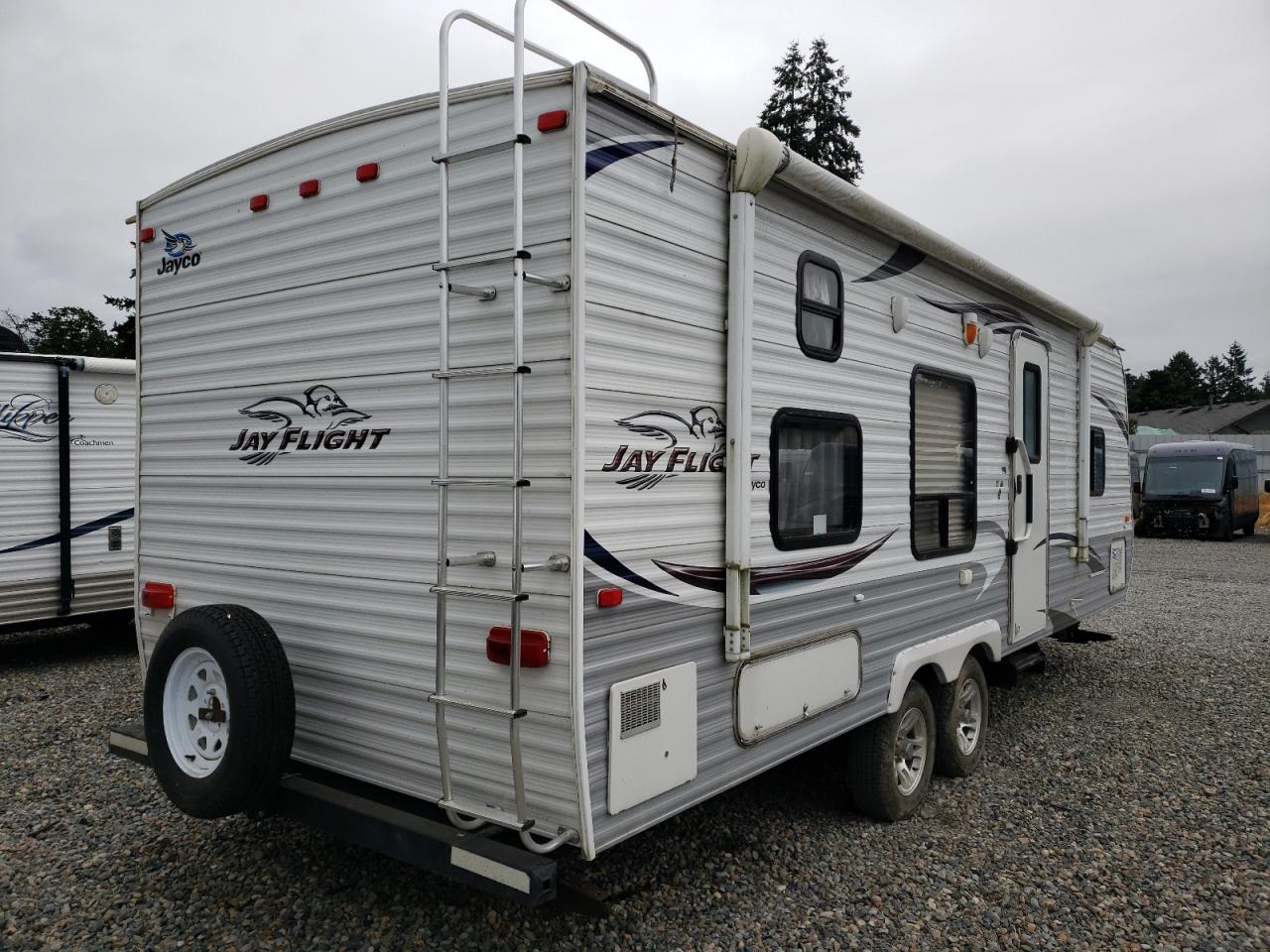 GoodThe 2012 Jayco Jay Flight 26/TVL appears to have suffered from vandalism, with the primary damage being to the body panels. The vehicle is white, and the images suggest a generally well-maintained camper trailer, despite the damage. The wheels, lights, and glasses seem to be in good condition. The interior shows signs of wear and tear consistent with its age, but no significant damage is visible. The presence of a spare tire suggests preparedness for road use.