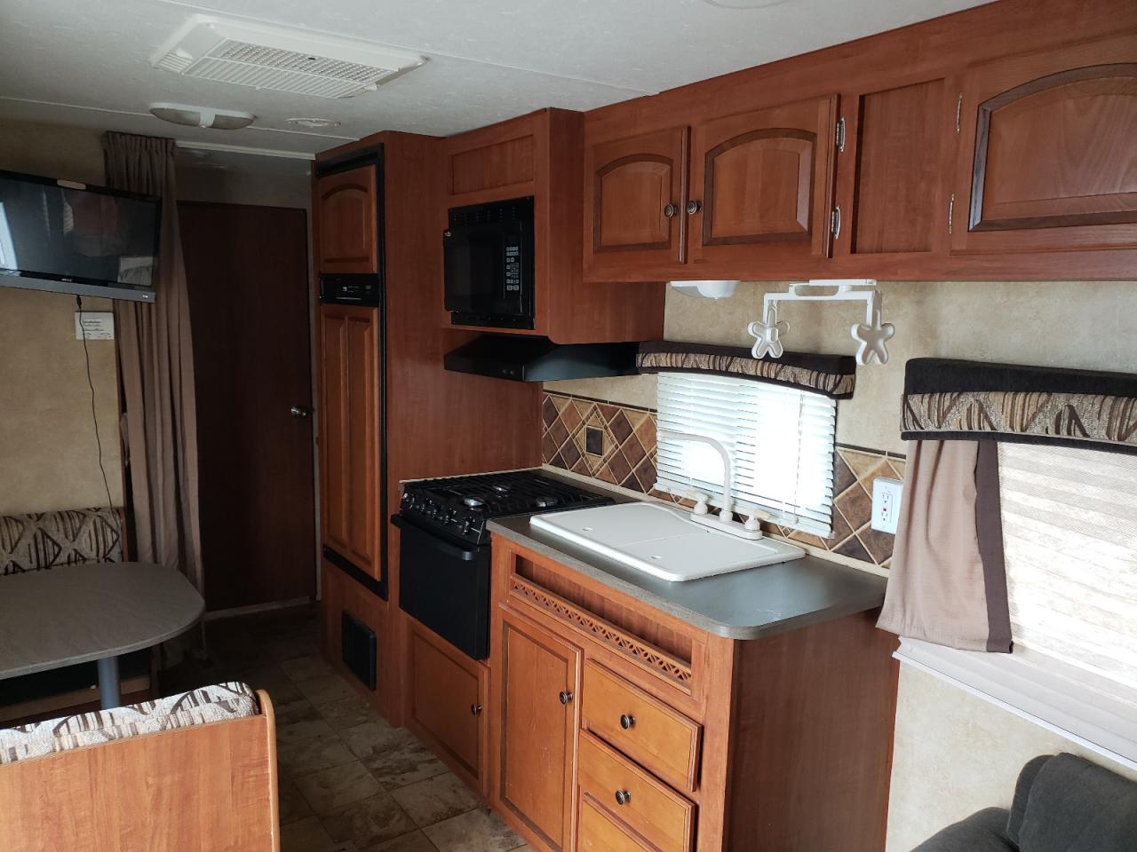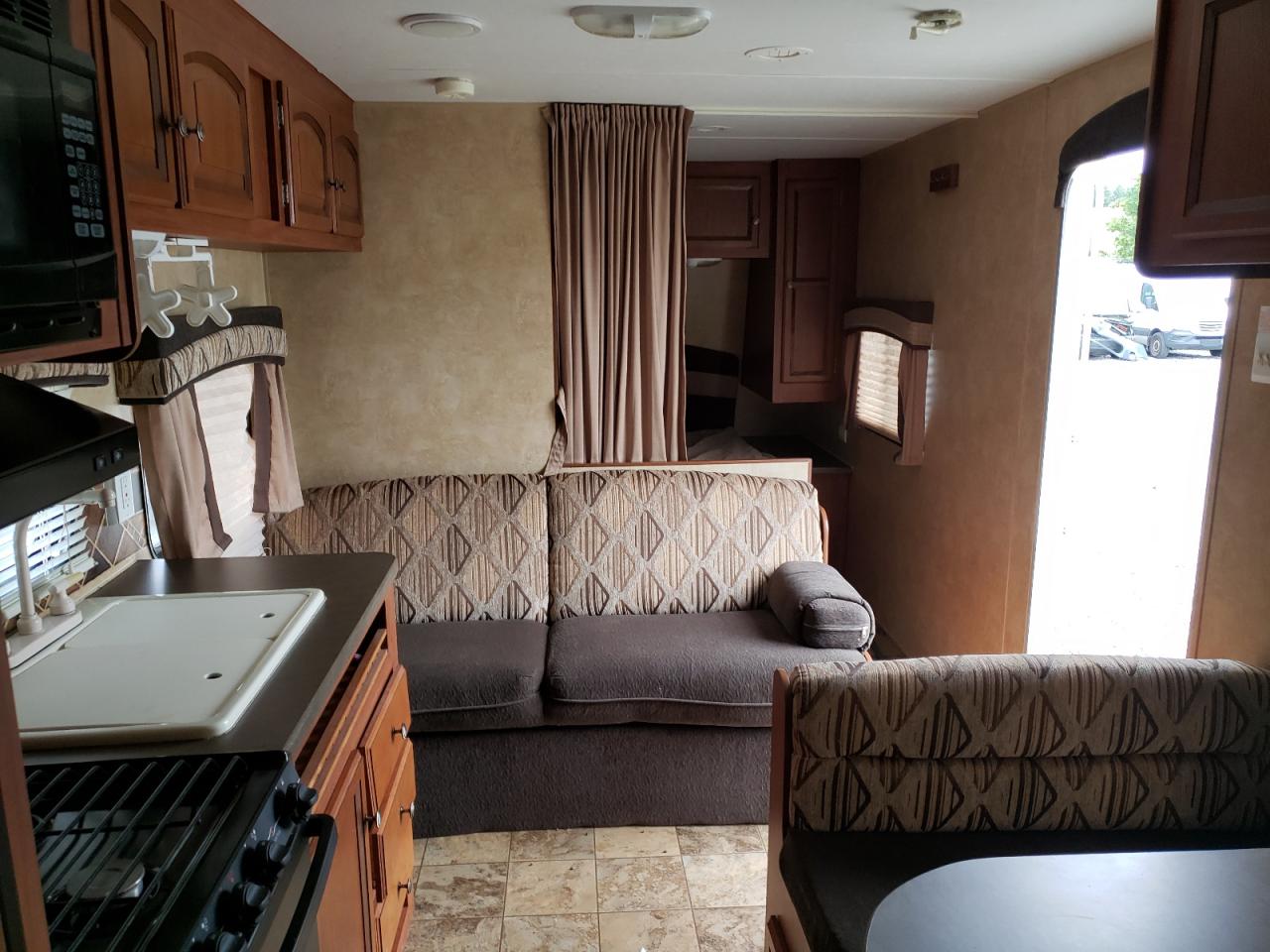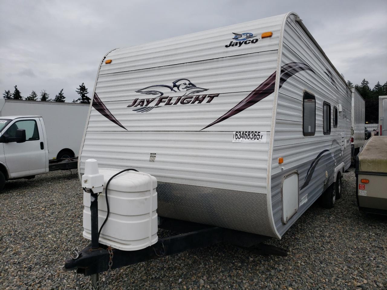 GoodThe 2012 Jayco Jay Flight 26/TVL appears to have suffered from vandalism, with the primary damage being to the body panels. The vehicle is white, and the images suggest a generally well-maintained camper trailer, despite the damage. The wheels, lights, and glasses seem to be in good condition. The interior shows signs of wear and tear consistent with its age, but no significant damage is visible. The presence of a spare tire suggests preparedness for road use.