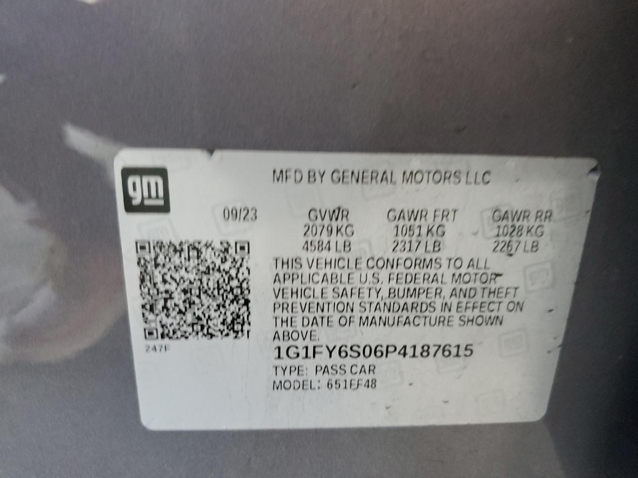 1G1FY6S06P4187615Final Bid