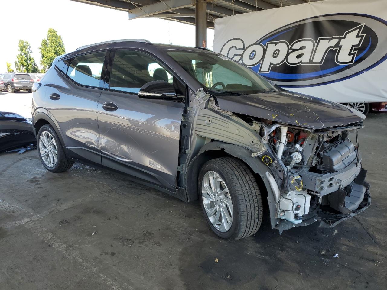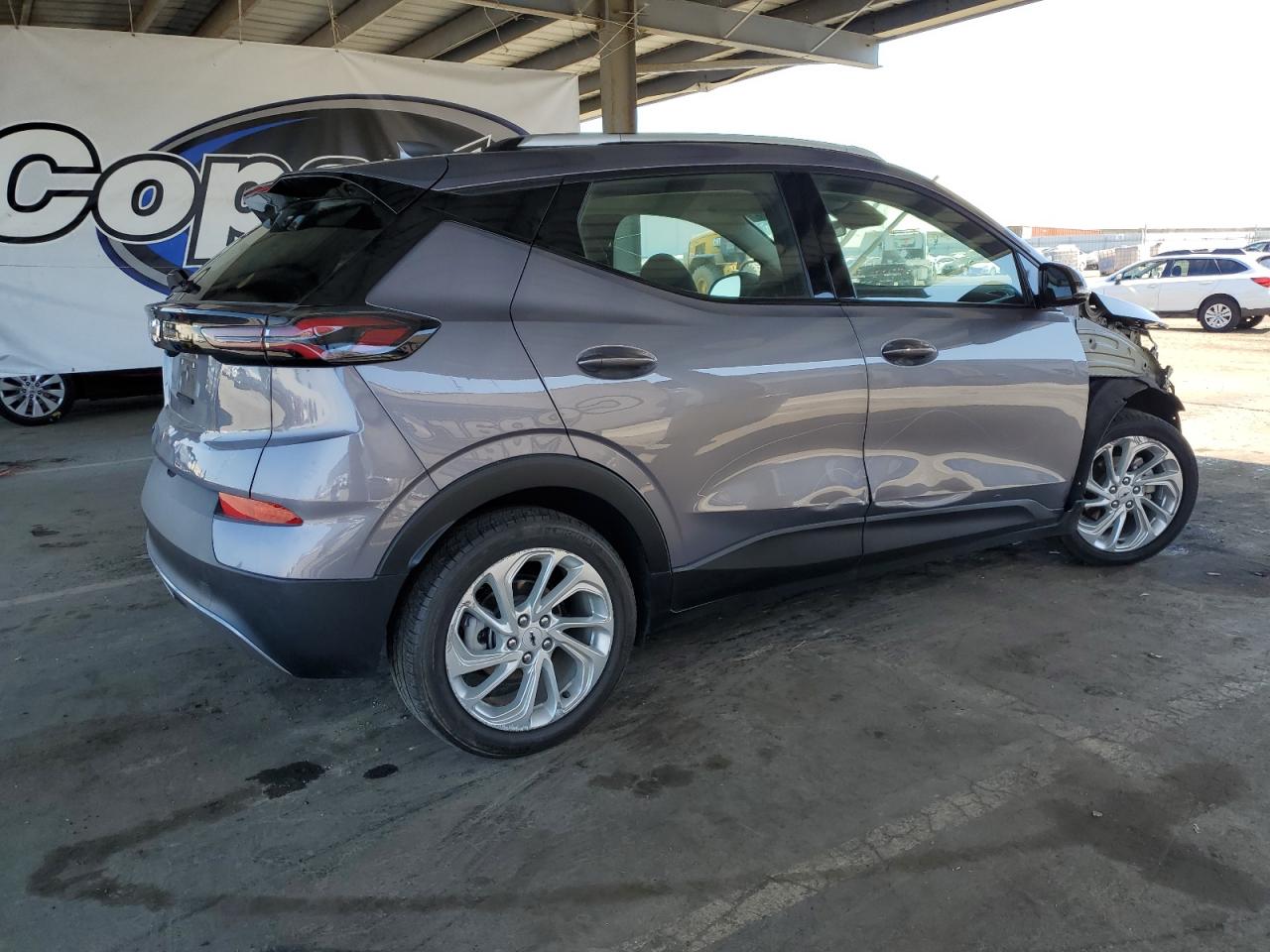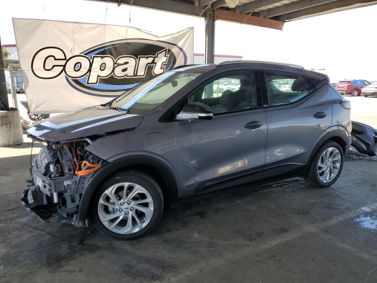 FairThis is a 2023 CHEVROLET BOLT EUV L with a gray exterior. The primary damage is to the front end, with no secondary damage reported. The start code is Run & Drive Verified.