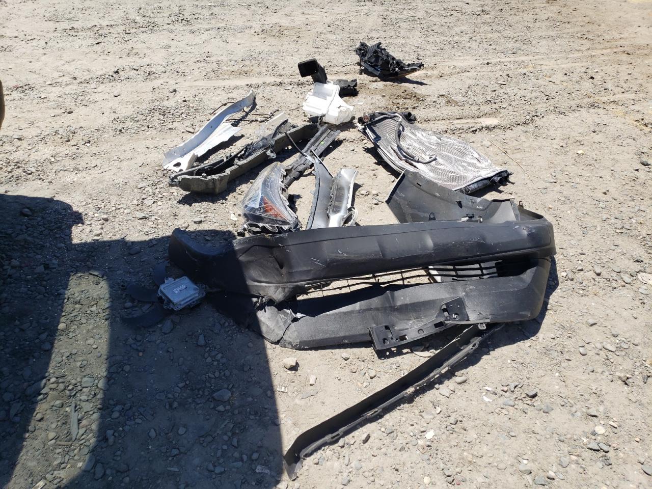The front end is severely damaged, including the bumper, hood, fenders, and associated components. The airbags have deployed, and there is interior damage. The vehicle appears to be non-operational.