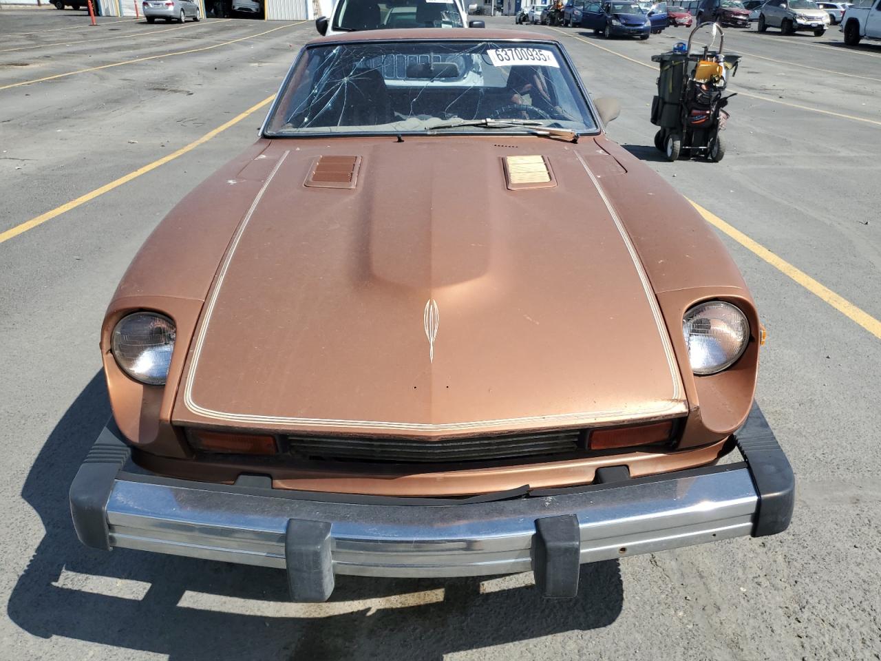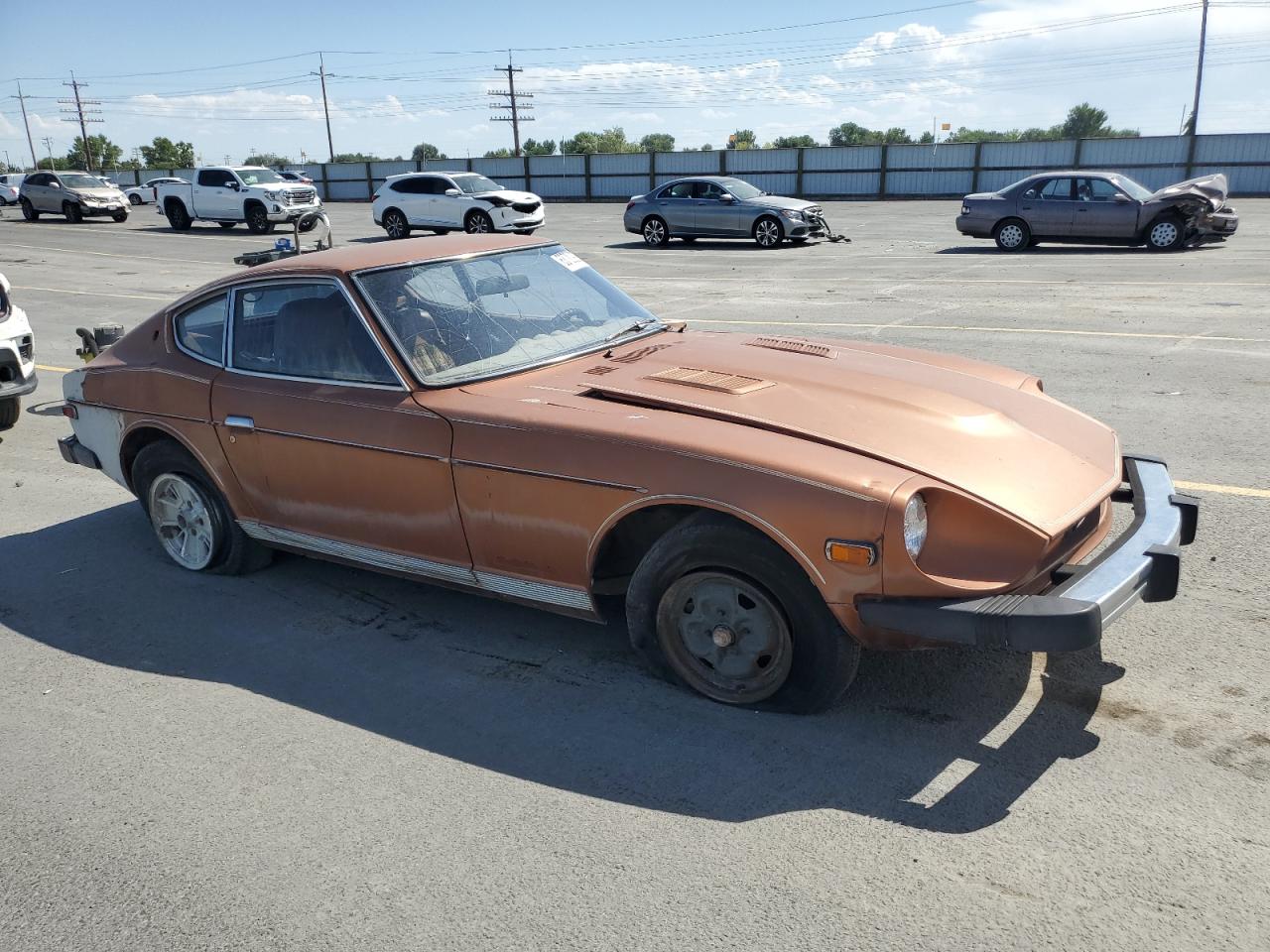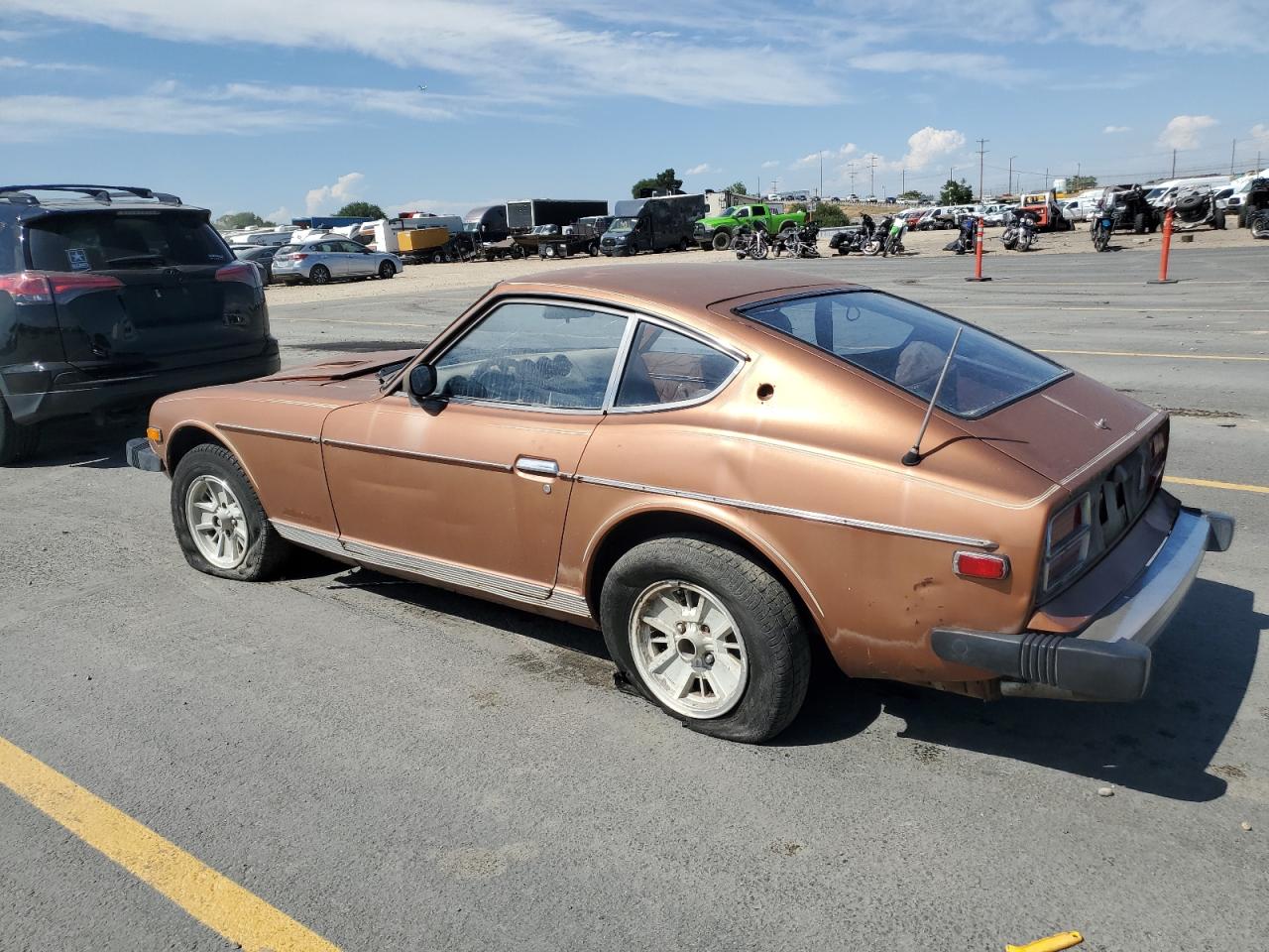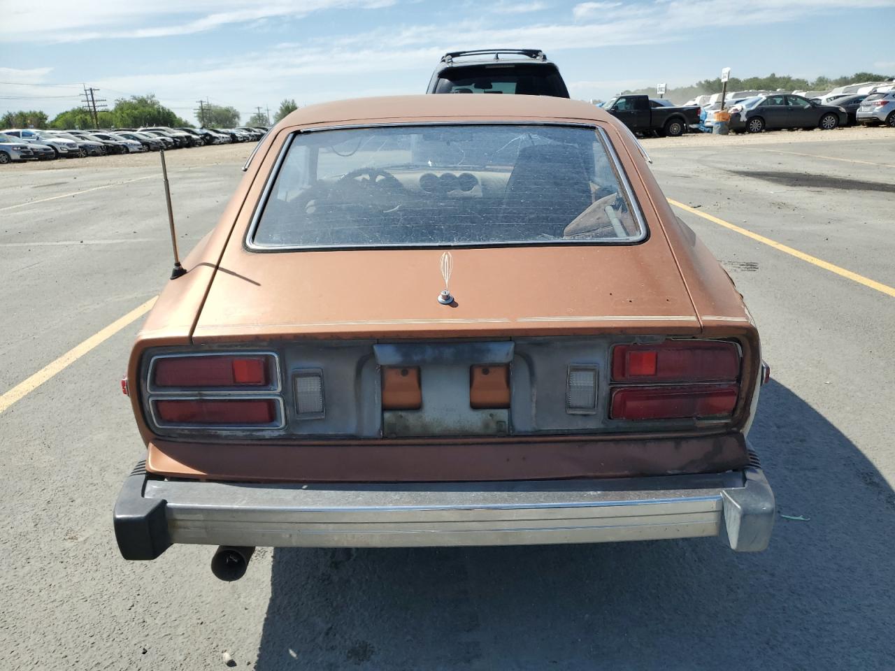 The 1977 Datsun 280Z appears in rough shape, with significant damage to the exterior and interior. The brown-colored coupe shows body damage, and the interior reflects considerable wear and tear. The tires are flat. Vehicle Damage Category: Body, as the primary damage is to the rear end. The car is in poor condition, and the visible damage includes significant body damage and wear and tear.