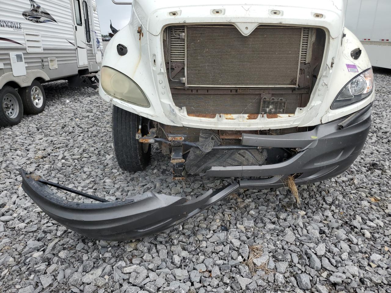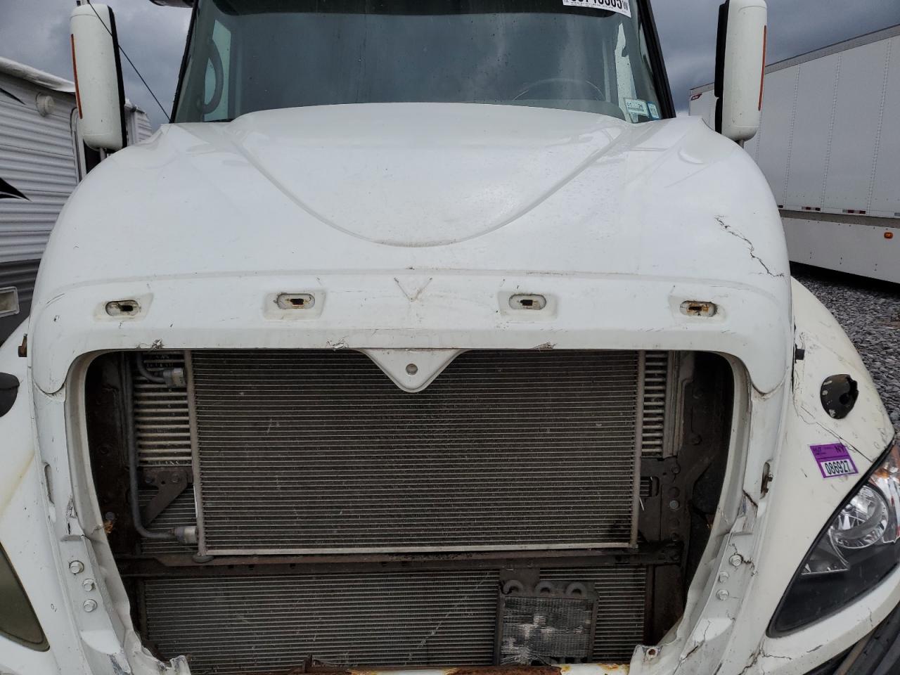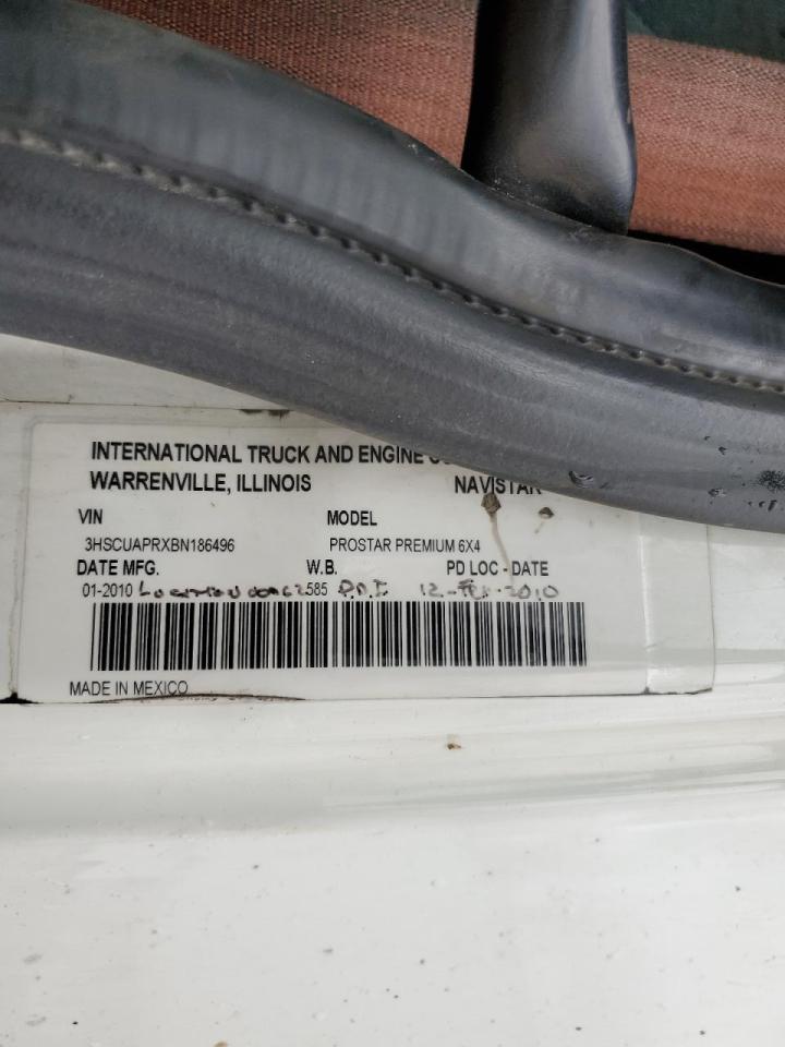 FairThe 2011 International Prostar PR is a white semi-truck with significant damage. The primary damage is body damage, visible across multiple panels. The front bumper is detached, and there is damage to the front of the truck. The wheels appear to be in acceptable condition, and the windows are intact. Interior shows minimal wear. The truck appears to be drivable despite the damage. No airbag damage can be seen.
