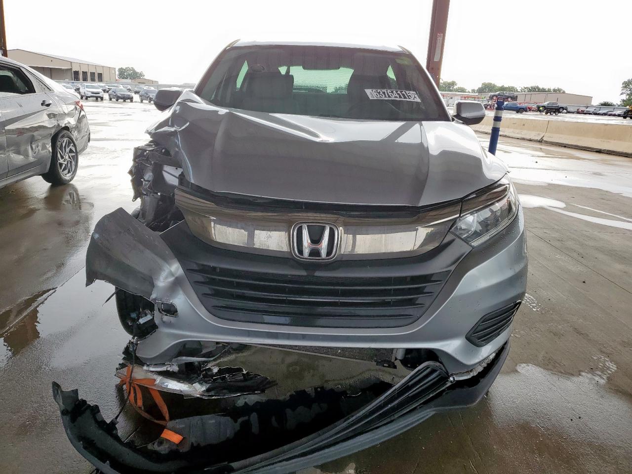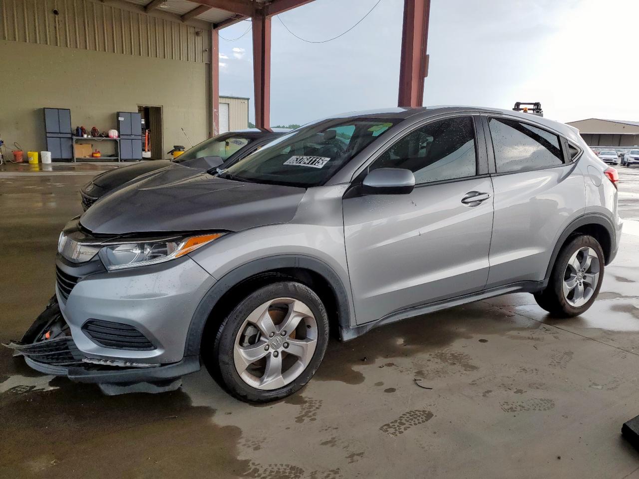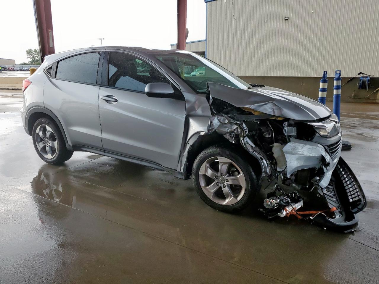 FairThe silver 2020 Honda HR-V LX with a Run & Drive Verified start code shows significant damage from front-end and side impacts. The front end is extensively damaged, and side damage is visible. Despite the exterior damage, the interior appears to be in relatively good condition, with normal wear and tear. The car is drivable despite the damage.
