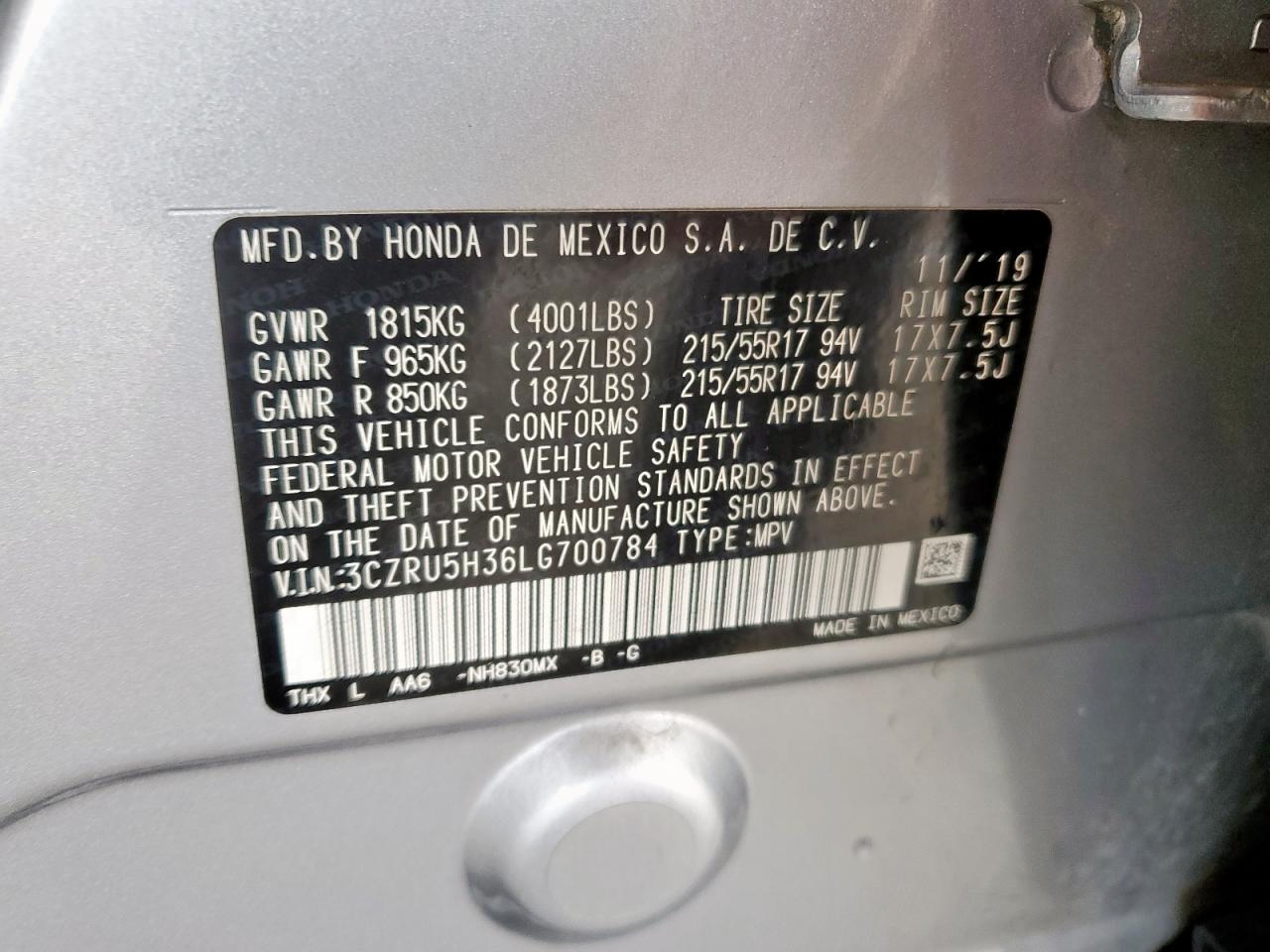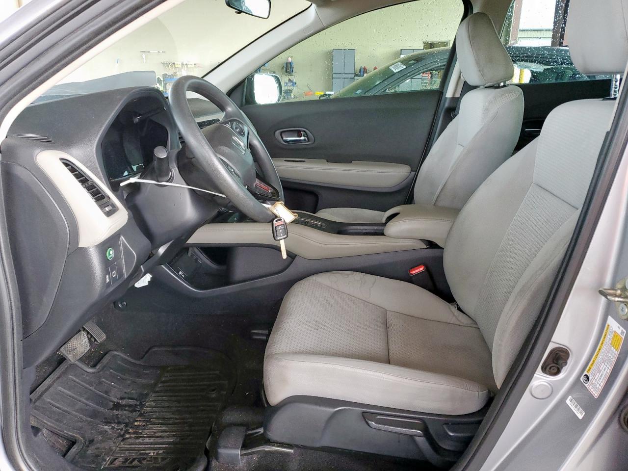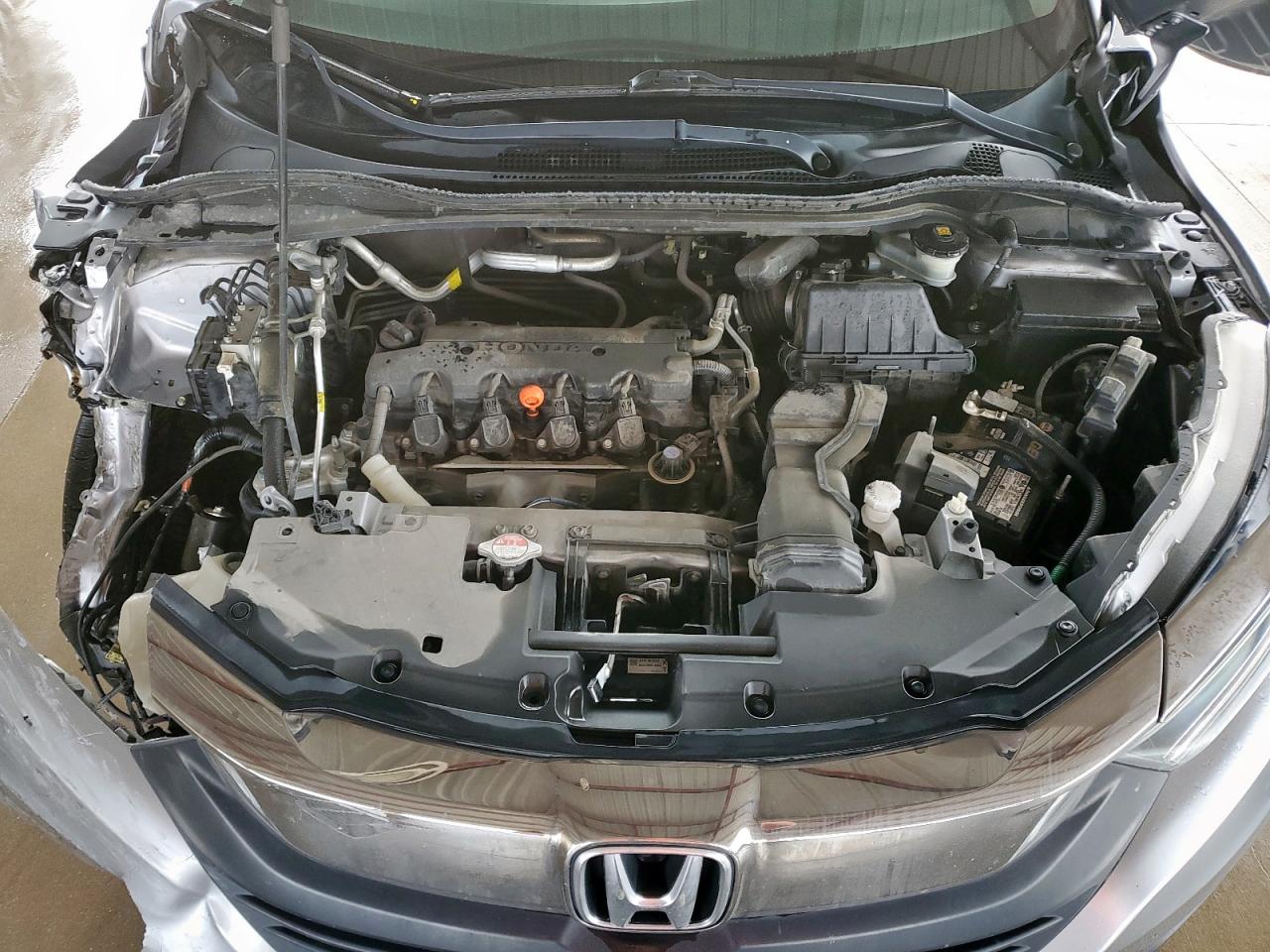 FairThe silver 2020 Honda HR-V LX with a Run & Drive Verified start code shows significant damage from front-end and side impacts. The front end is extensively damaged, and side damage is visible. Despite the exterior damage, the interior appears to be in relatively good condition, with normal wear and tear. The car is drivable despite the damage.