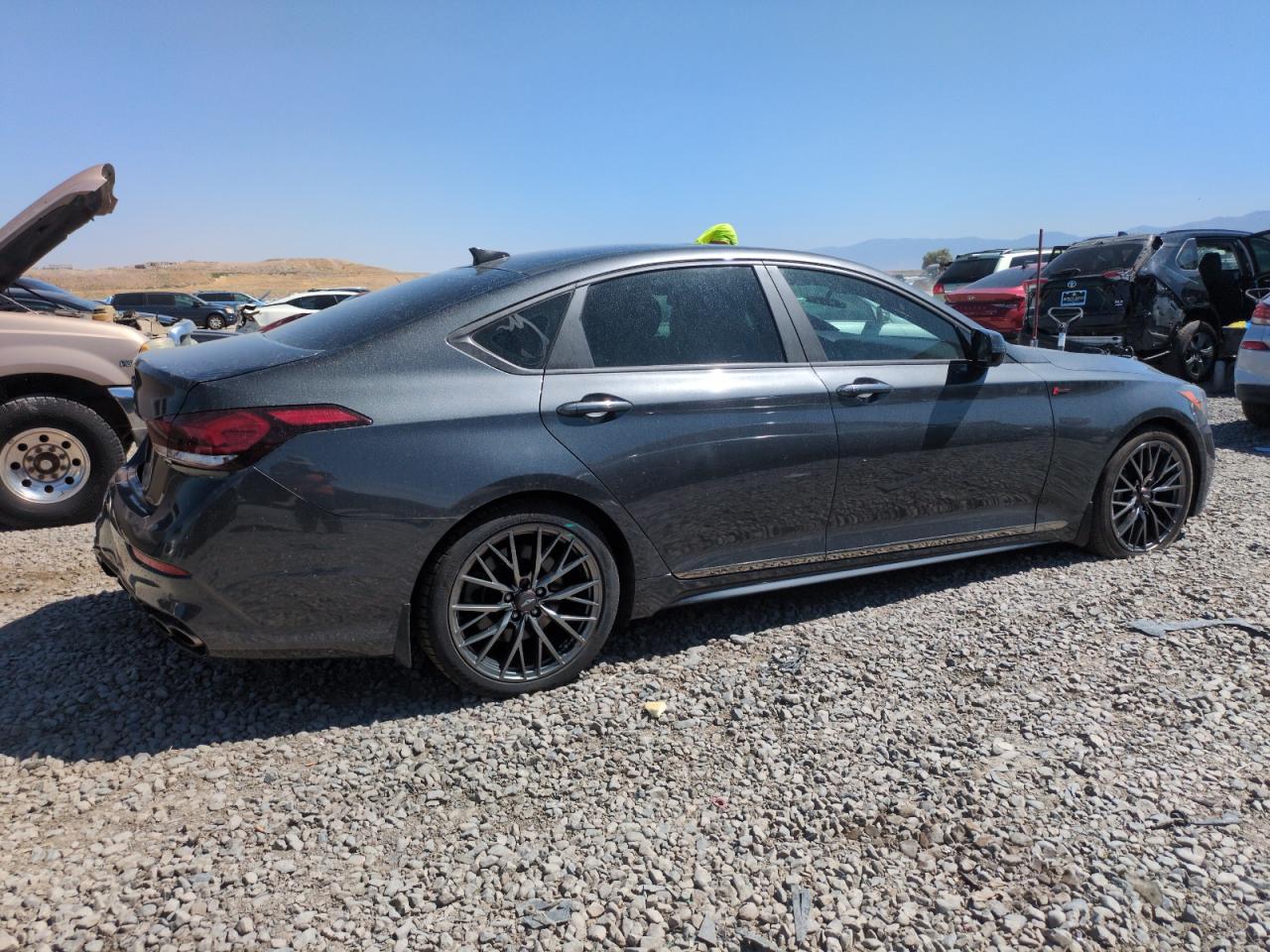 FairThis is a 2018 GENESIS G80 SPORT. The primary damage is rear-end damage, and the car's color is gray. The start code is Run & Drive Verified. The car has visible damage to the rear body panels, including the bumper, trunk, and potentially the quarter panels. The wheels appear intact, and the lights and glasses seem to be in acceptable condition. The interior shows minor to moderate wear and tear consistent with age and mileage. The airbags are not deployed. The car is drivable despite the damage. The car may require repairs to the body panels to return it to a good exterior condition. The damage appears to be mainly to the body, with no apparent mechanical issues.