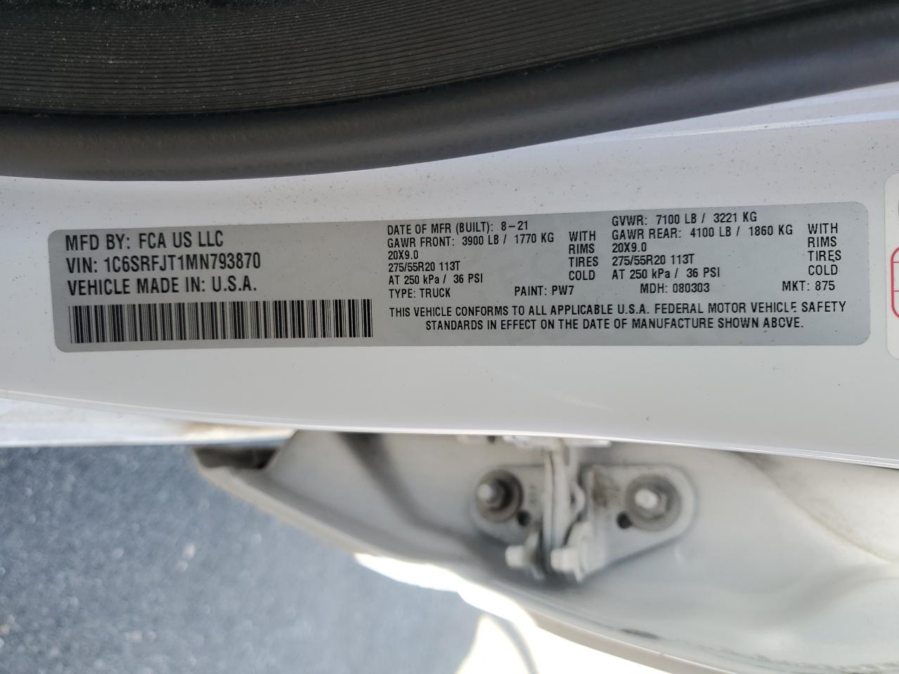 FairThis is a white 2021 RAM 1500 LARAMIE with Run & Drive Verified status. It has sustained SIDE and REAR END damage. The vehicle is drivable, but body panels require repair or replacement. The interior appears to be in good condition. Airbags are not reported to be deployed.