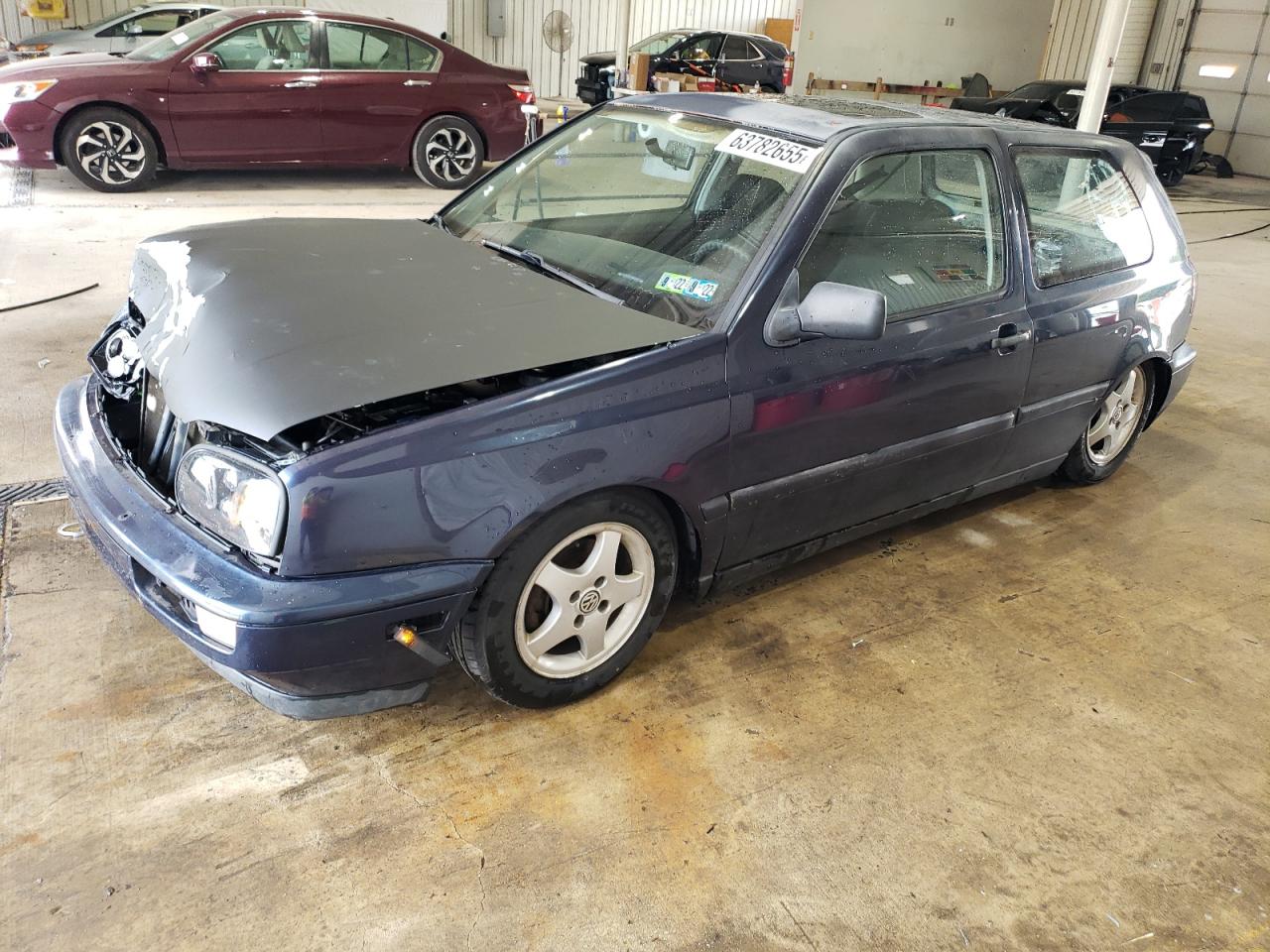 FairThe 1997 Volkswagen GTI has sustained front-end damage, with the body panels showing significant damage. The car is blue and has white wheels. The interior condition is good, while the exterior is fair. The car is drivable, but needs repairs.
