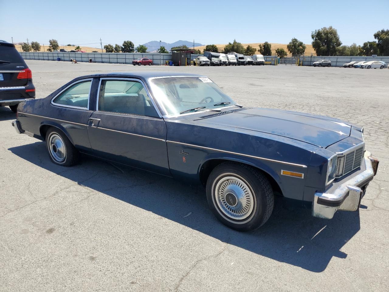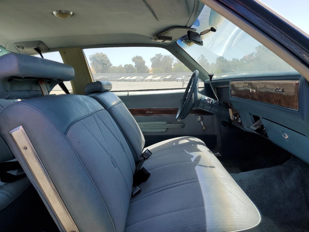 GoodThis is a 1977 Oldsmobile Omega in blue. The car shows signs of wear and tear, with minor dents and scratches on the body. The interior appears to be in decent condition, with some wear consistent with its age and mileage. The car's wheels and glass seem to be intact. Overall, the car is drivable and in fair condition.