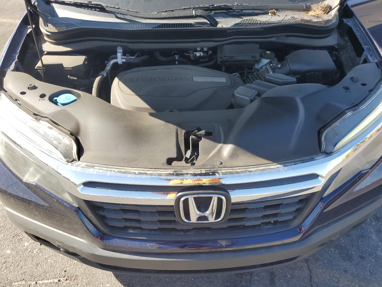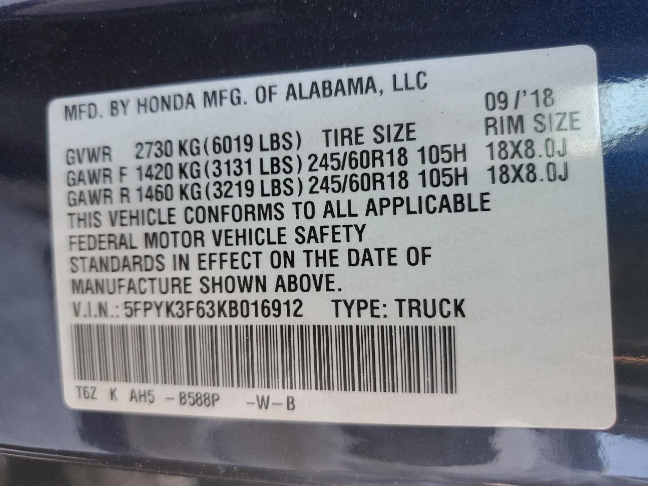 FairThe 2019 Honda Ridgeline is a blue pickup truck with significant damage. The primary damage is to the top/roof, and the secondary damage is to the rear end. The vehicle's start code is Run & Drive Verified. Overall, the car shows signs of wear and tear, particularly on the exterior, while the interior appears to be in better condition. The vehicle is drivable but requires repairs.