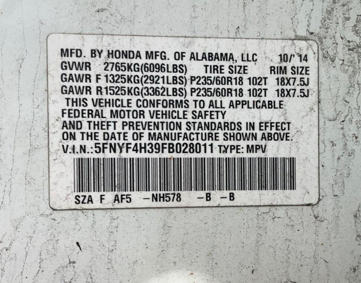 5FNYF4H39FB028011Final Bid
