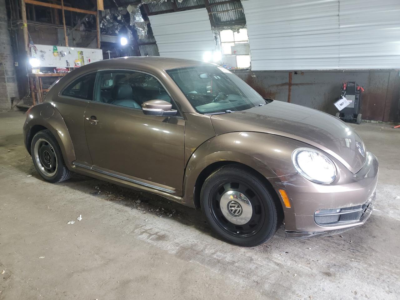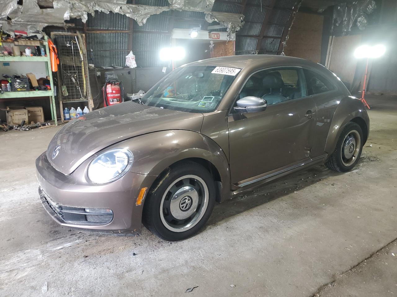 GoodThe 2012 Volkswagen Beetle in brown exhibits minor dents and scratches, indicating cosmetic body damage. The wheels, lights, and glasses appear to be in acceptable condition. The interior shows wear, with possible damage to the seats and dashboard. The airbag status is unknown.
