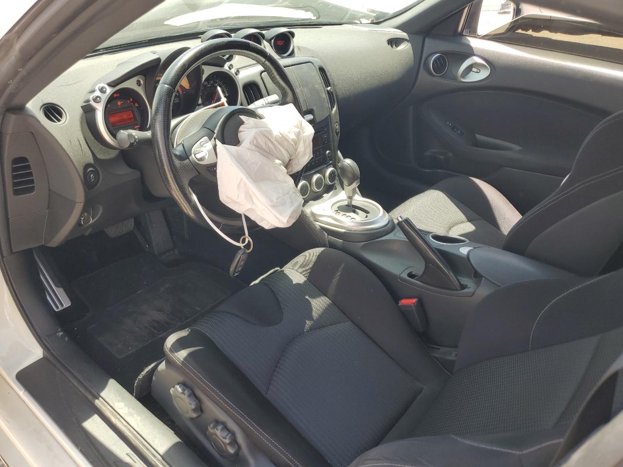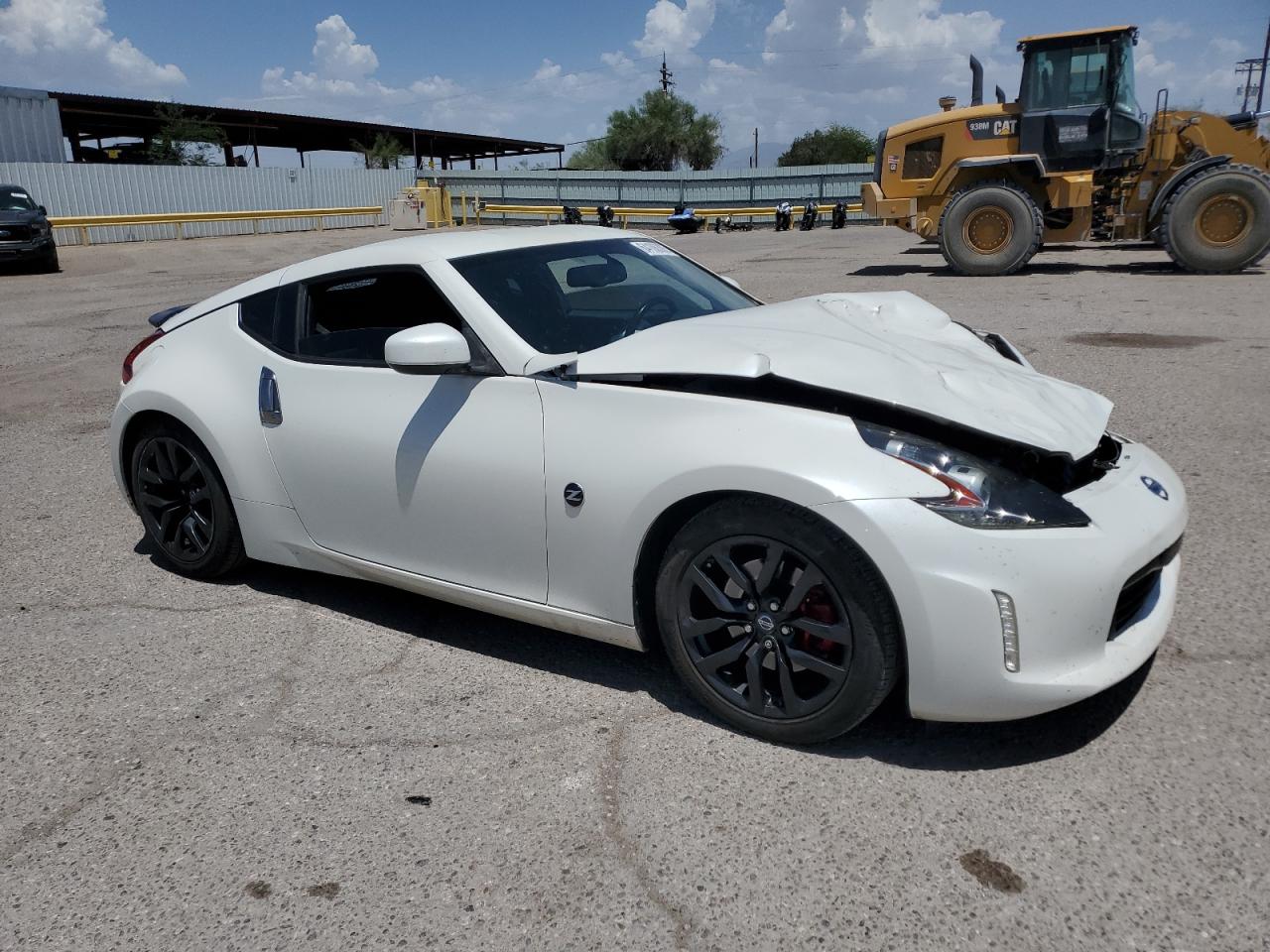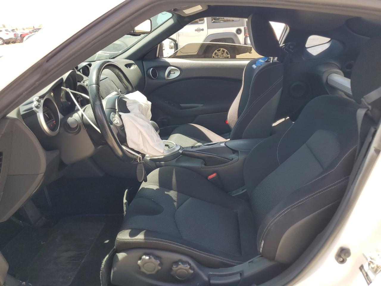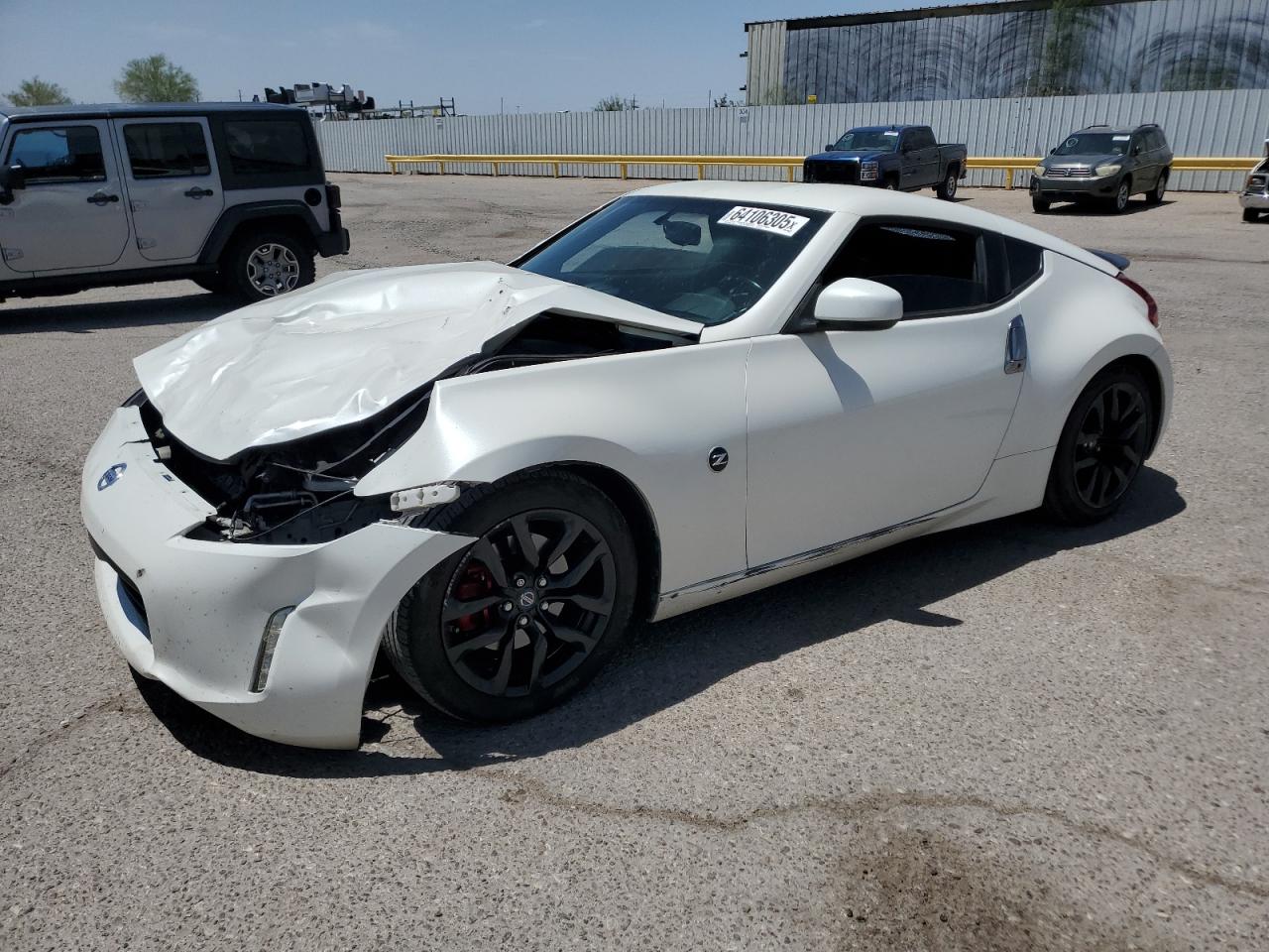 FairThis white 2020 Nissan 370Z BASE has sustained significant damage to the front end, indicating frame damage. The exterior shows considerable impact, with the front of the vehicle heavily damaged. The interior presents signs of airbag deployment, with visible damage.