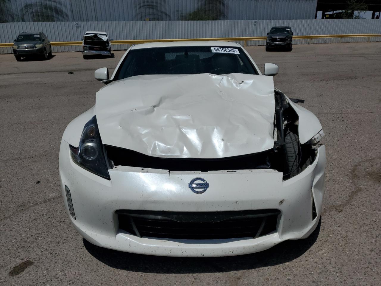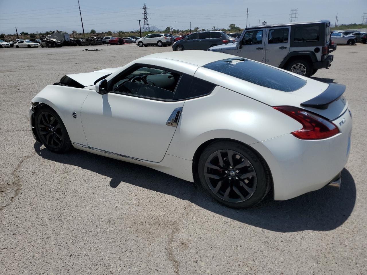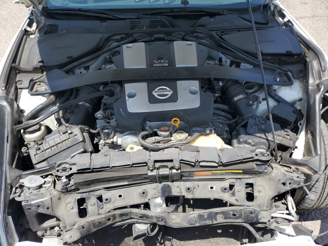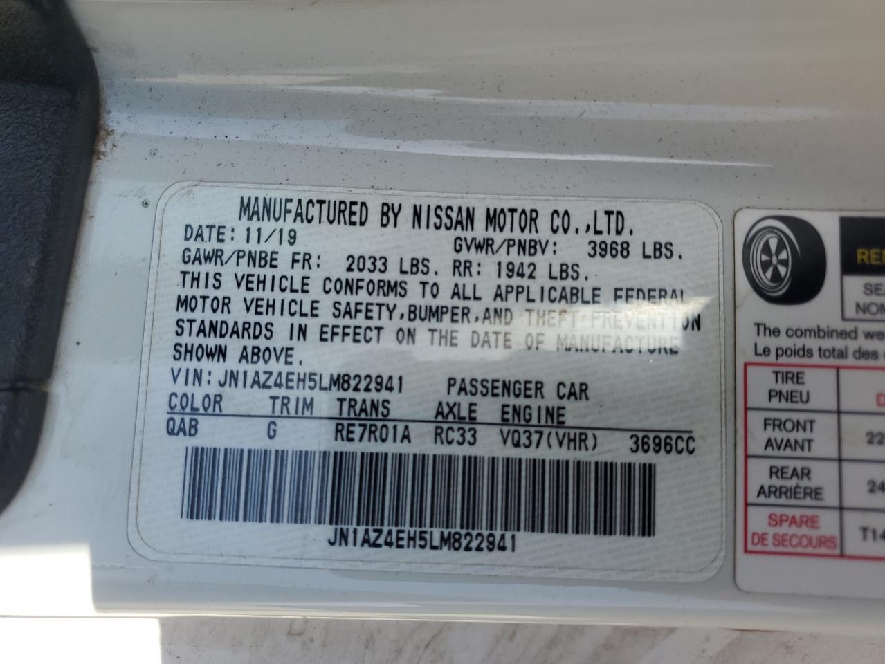 FairThis white 2020 Nissan 370Z BASE has sustained significant damage to the front end, indicating frame damage. The exterior shows considerable impact, with the front of the vehicle heavily damaged. The interior presents signs of airbag deployment, with visible damage.