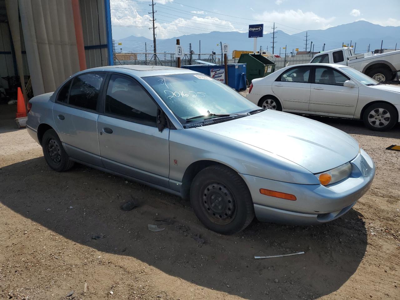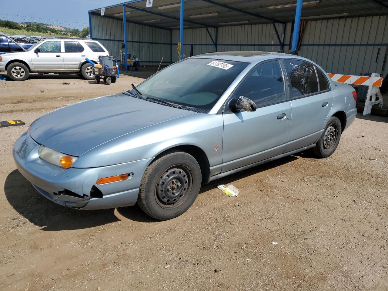 Fair2002 Saturn SL1. This vehicle is blue and has suffered front-end damage, along with hail damage. The car is drivable and has been run and drive verified. The condition overall shows signs of wear and tear consistent with its age.
