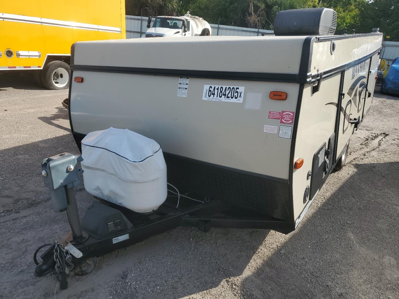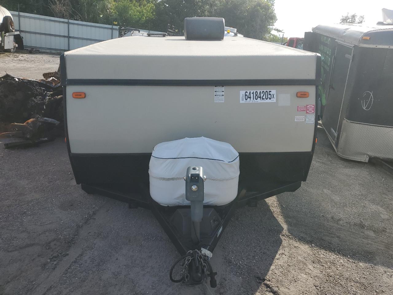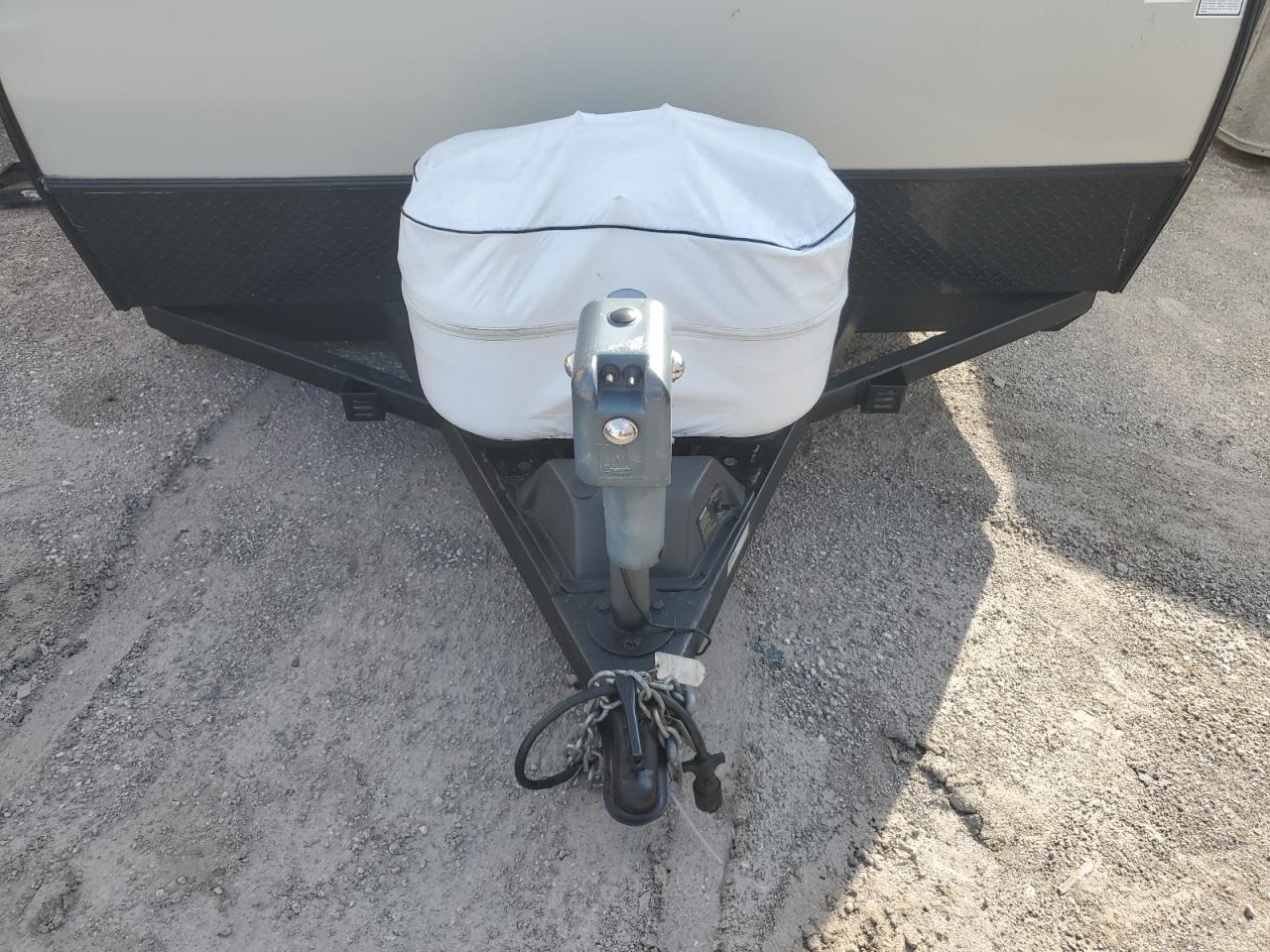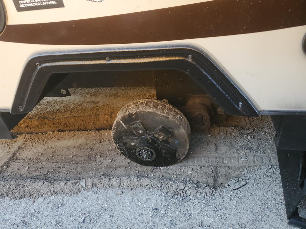 GoodFRRV TRAILER 2014, beige color. The primary damage is to the undercarriage. The vehicle shows no signs of secondary damage. The trailer appears to be in good overall condition with some minor cosmetic wear. The wheels appear to be intact, and the lights and glasses are in good condition. No apparent interior damage or airbag deployment is visible.
