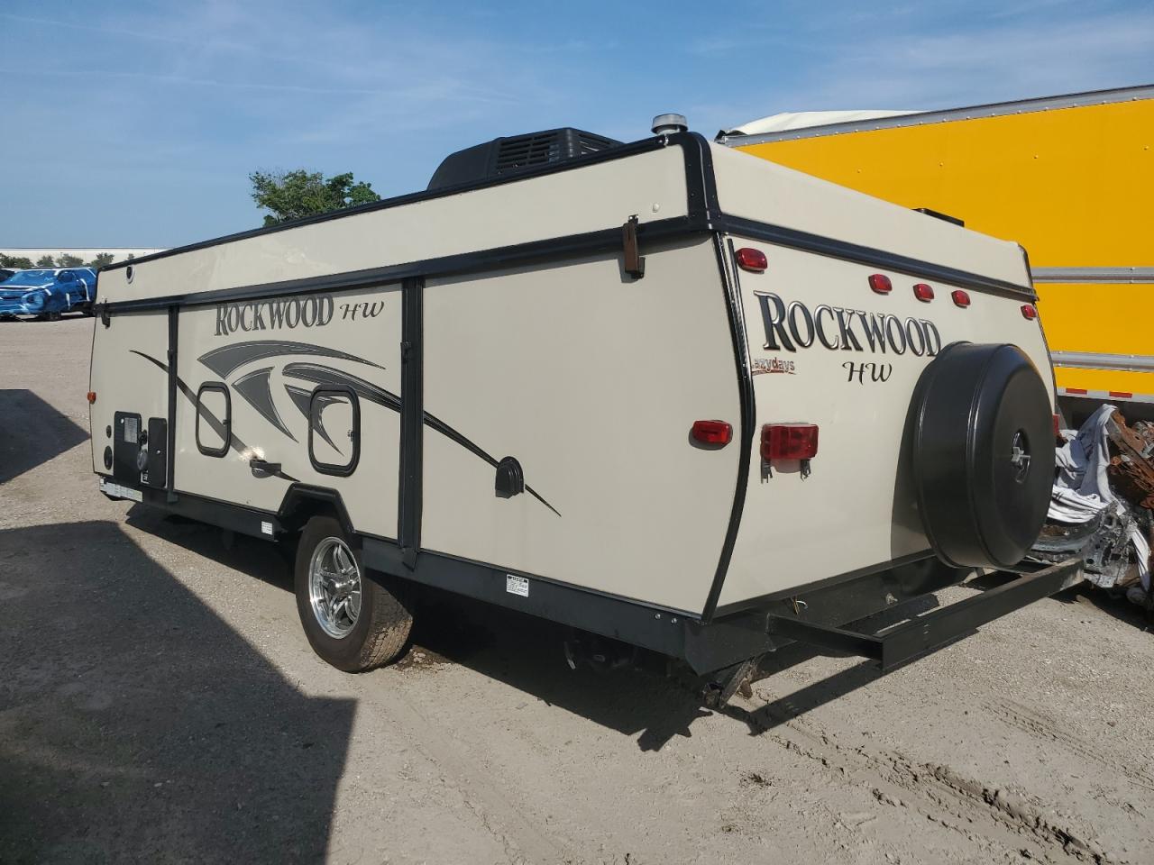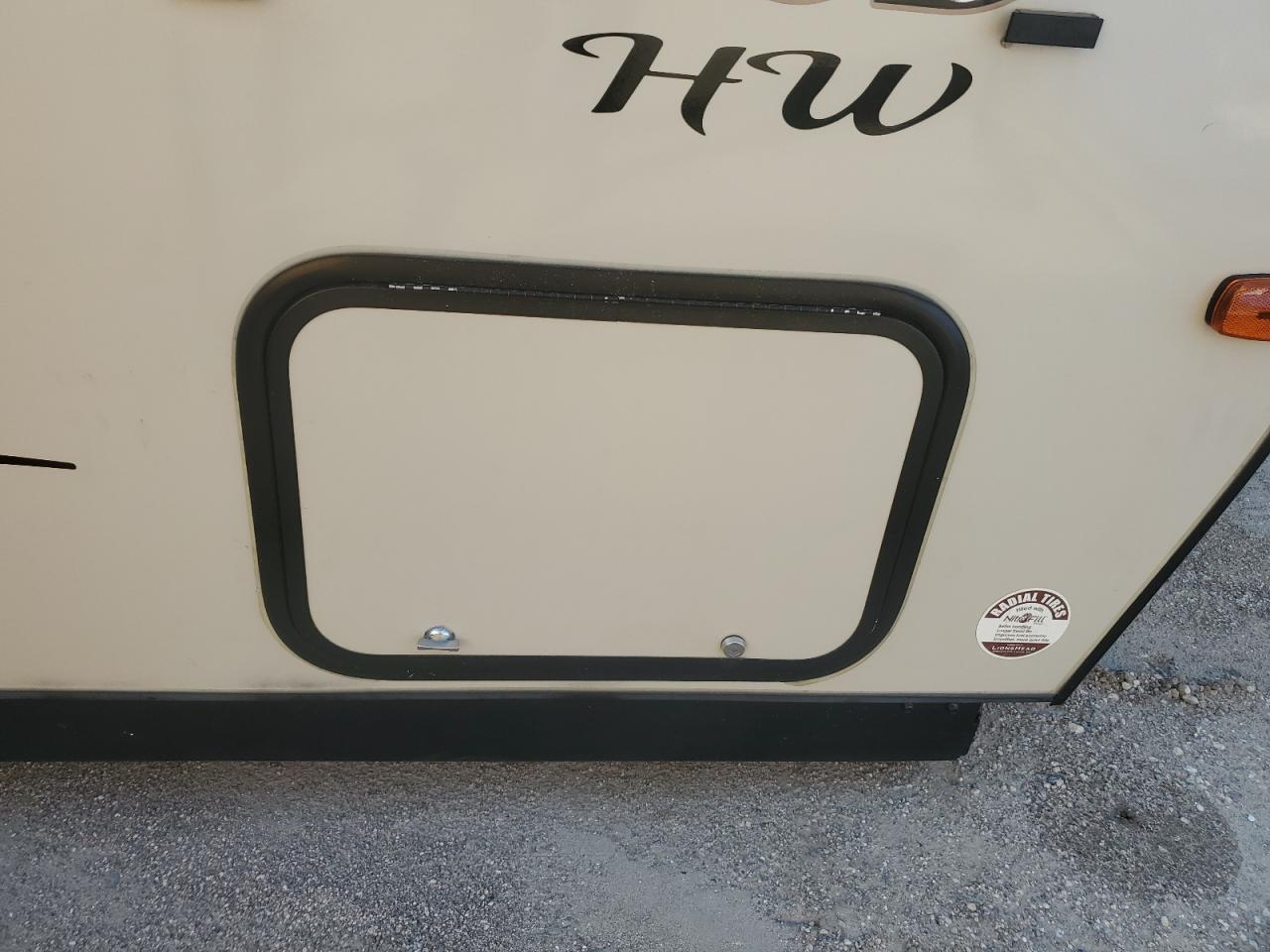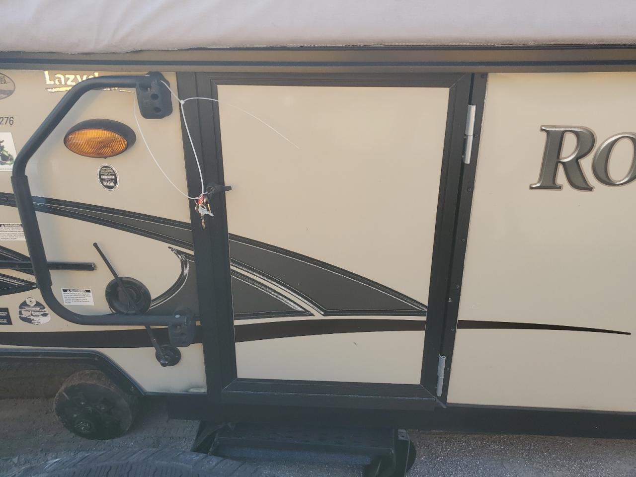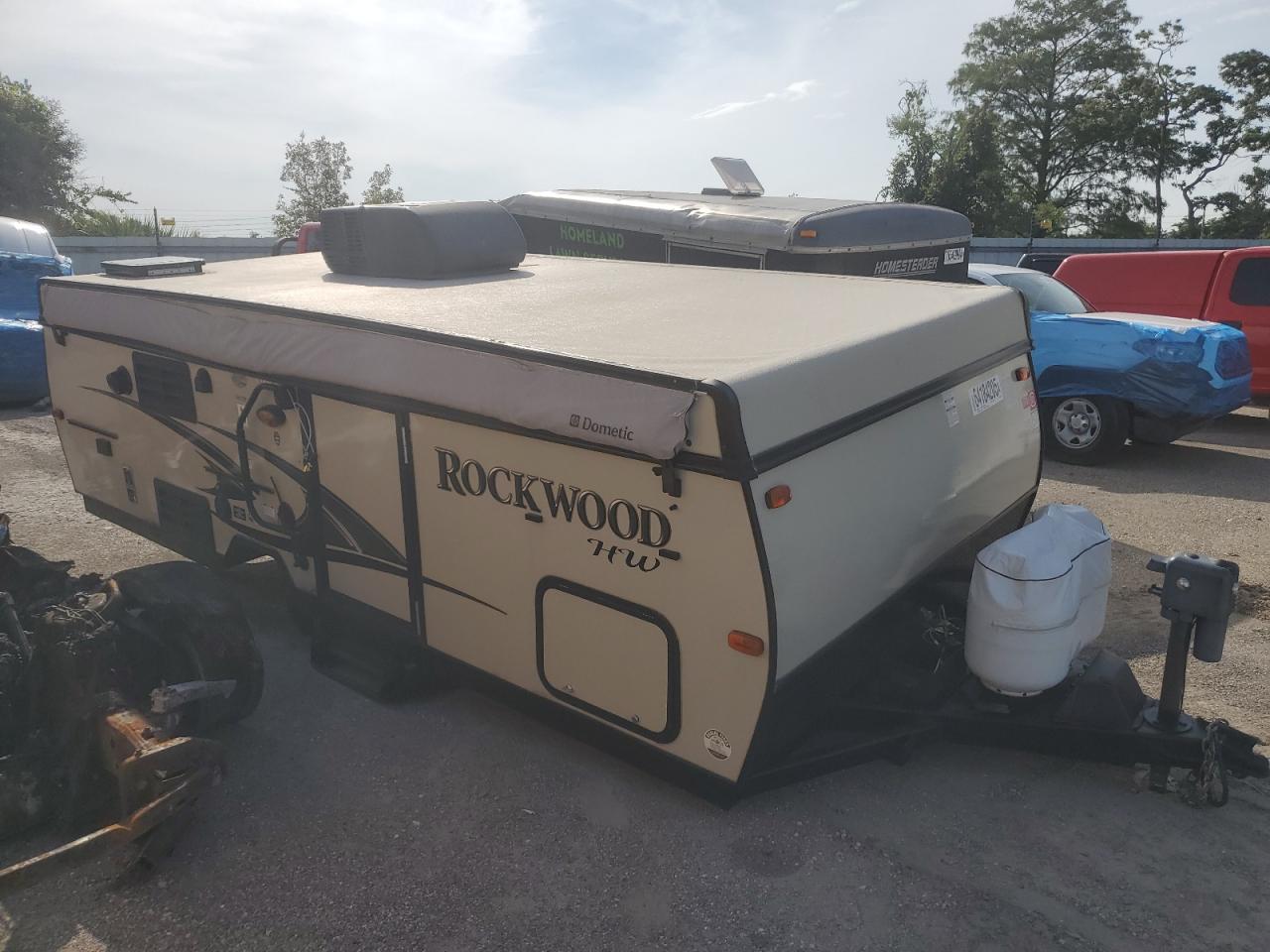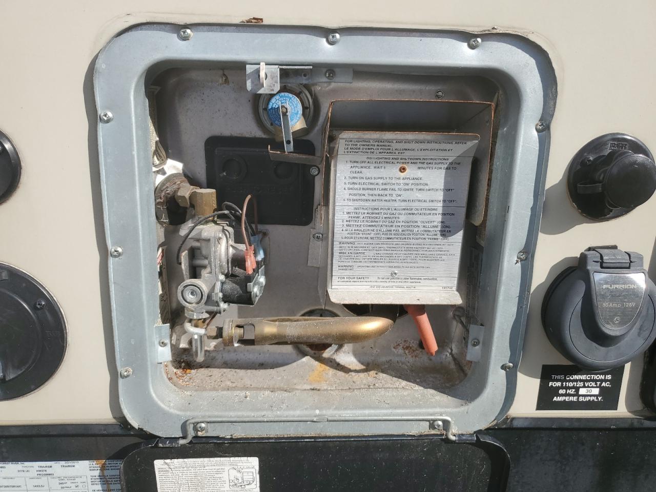 GoodFRRV TRAILER 2014, beige color. The primary damage is to the undercarriage. The vehicle shows no signs of secondary damage. The trailer appears to be in good overall condition with some minor cosmetic wear. The wheels appear to be intact, and the lights and glasses are in good condition. No apparent interior damage or airbag deployment is visible.