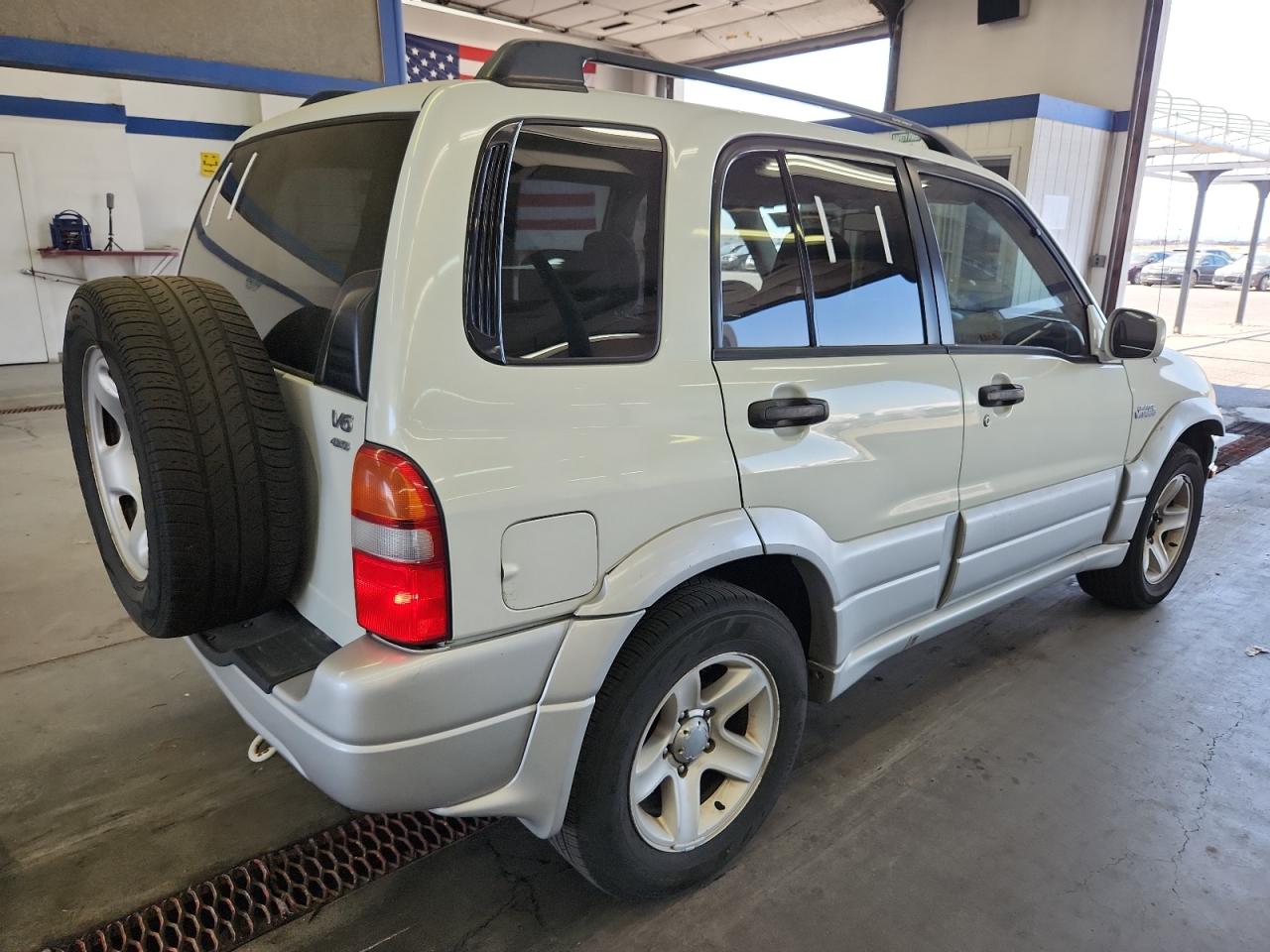 GoodThis 2003 Suzuki Grand Vitara presents in a white exterior, showing minor dents and scratches, classified as cosmetic damage. The vehicle has been verified as 'Run & Drive'. The car's exterior shows signs of wear but remains in reasonable condition. Interior photos reveal typical wear, with no significant damage to the seats or dashboard. Overall, the vehicle seems drivable and in good condition, the interior is relatively intact with some cosmetic imperfections. All the lights and glasses look ok, wheels are fine.