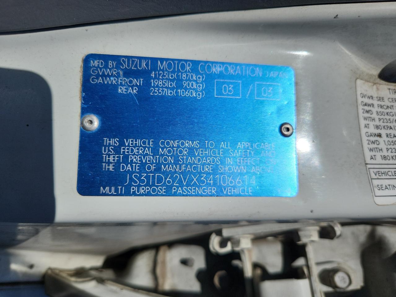 JS3TD62VX34106614Final Bid