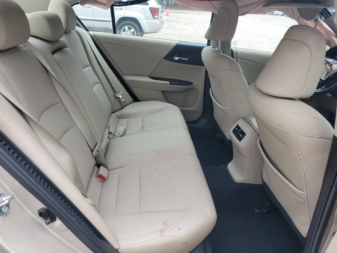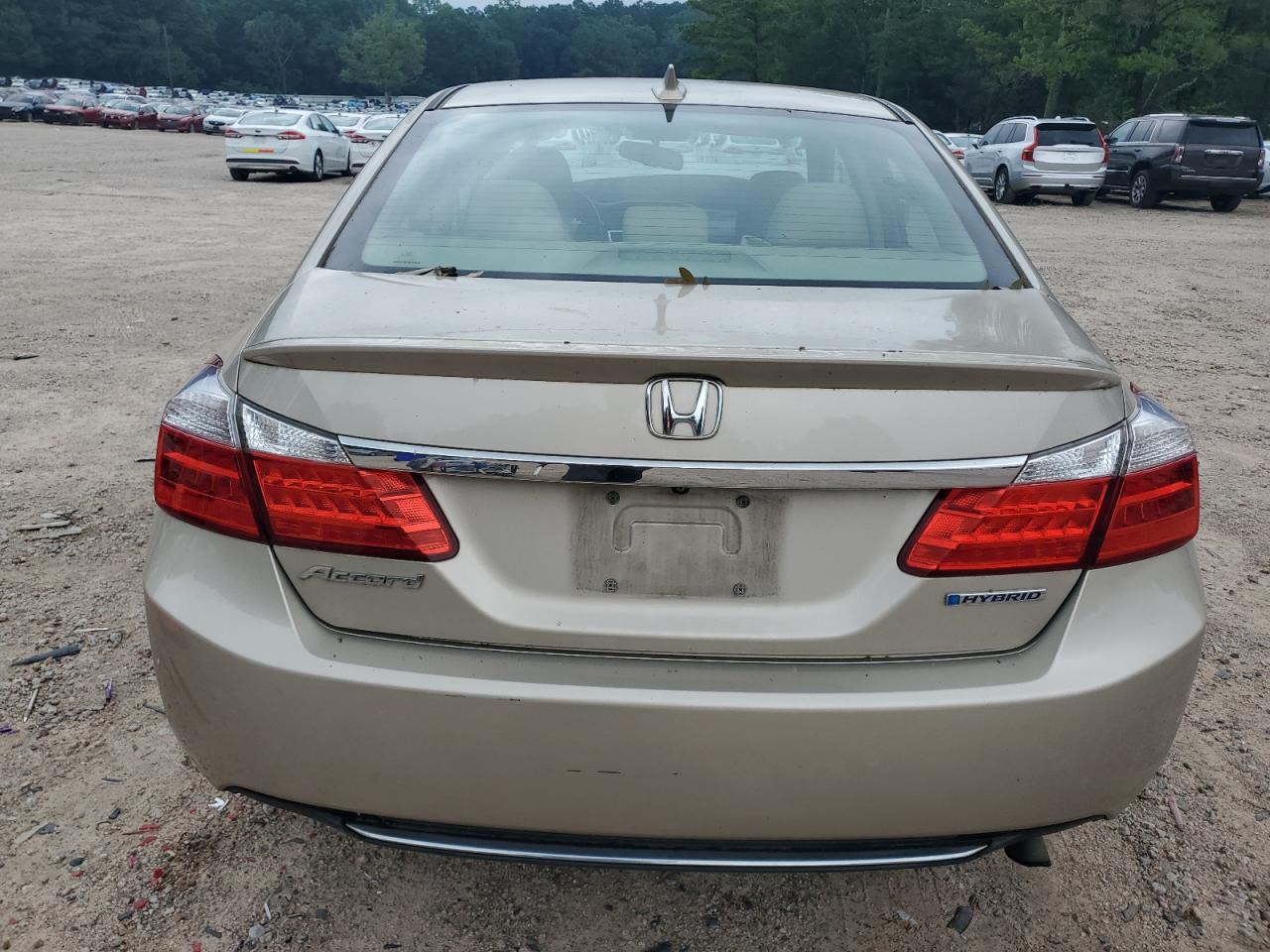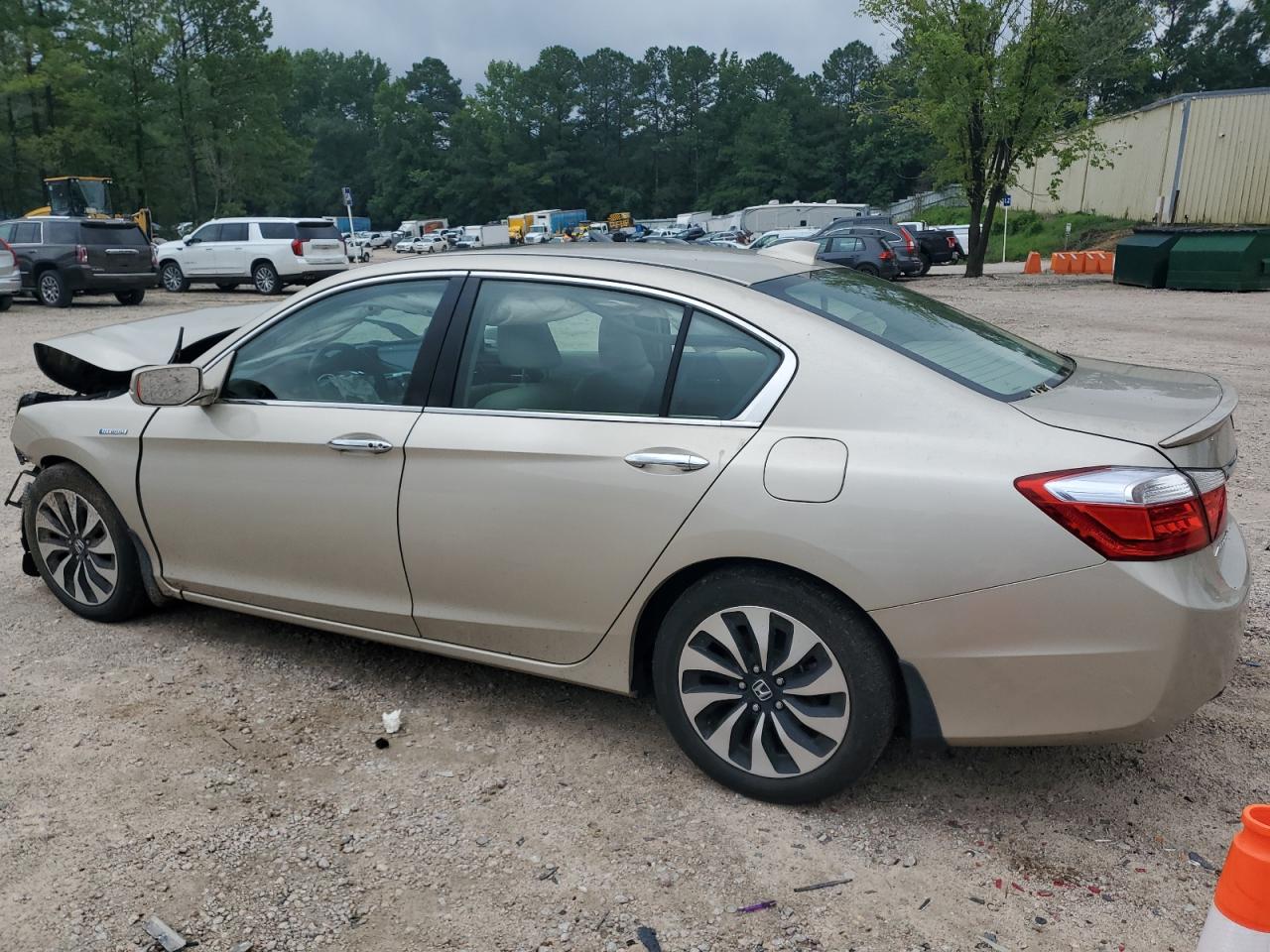 FairThis is a tan 2015 Honda Accord Hybrid that has sustained significant front-end damage. The vehicle has visible damage to the front fascia, hood, and potentially the frame. Both the exterior and interior conditions are assessed as 'Fair', indicating moderate damage throughout. The overall state of the vehicle is rated as 'Poor' due to the extensive damage. The airbags have deployed, and the interior shows signs of impact and damage. This car likely requires considerable repair and is potentially not drivable in its current condition. The wheels appear to be intact. The lights are damaged. The glasses appears intact.