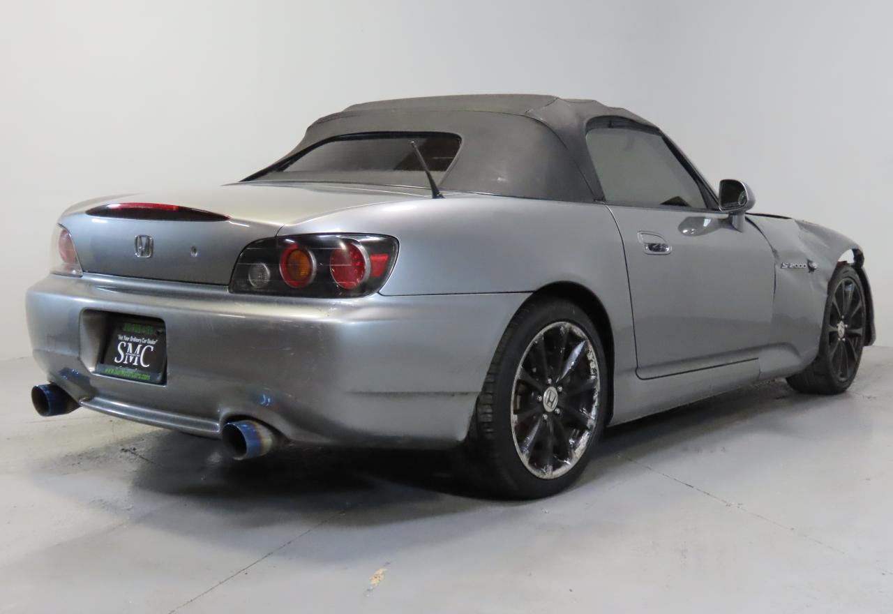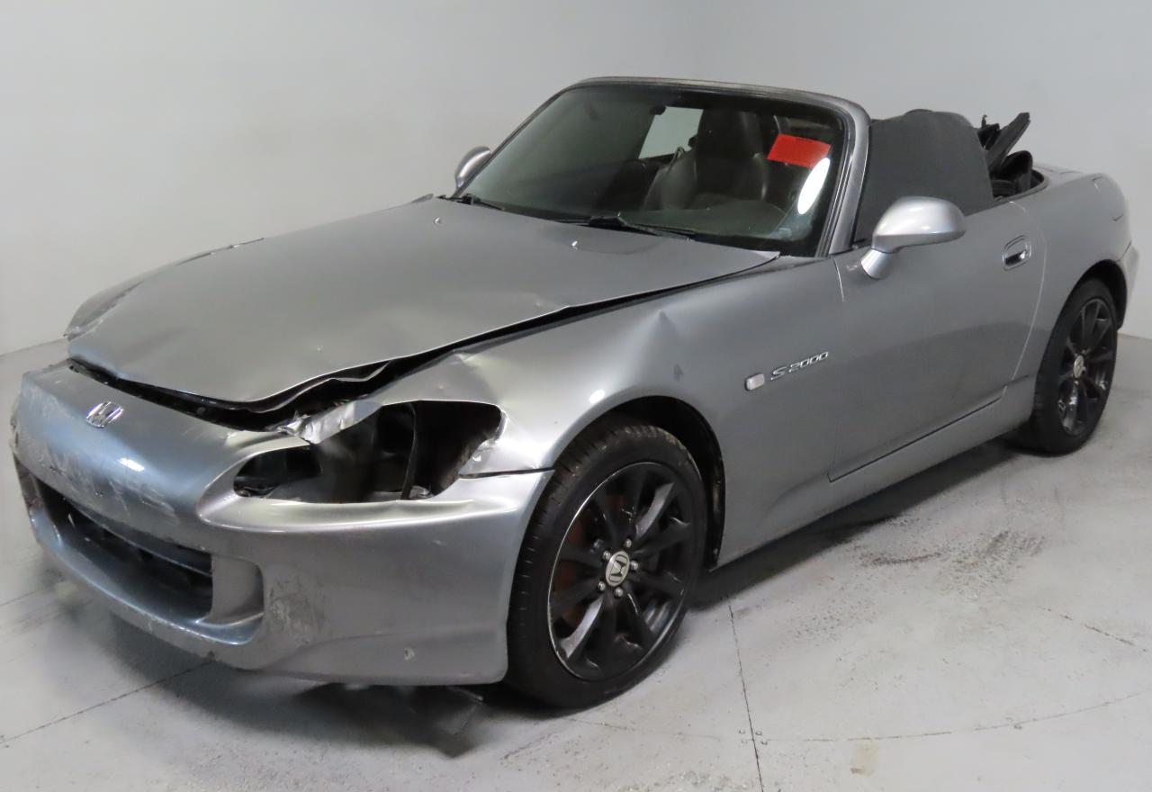 FairThe 2008 Honda S2000 is silver and shows significant damage primarily to the body panels. The front end has extensive damage, including the bumper, fender, and hood. The wheels appear to be intact, but the lights are damaged. The windshield is cracked. The interior shows some wear and tear, with no visible airbag deployment. The engine bay seems intact. The car's odometer reads 132,417 miles. This Honda S2000 is a sporty roadster known for its performance and handling.