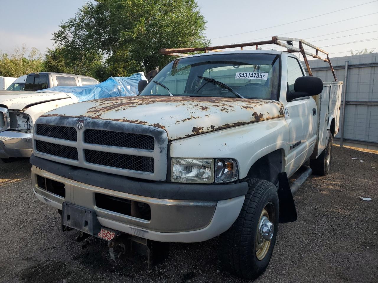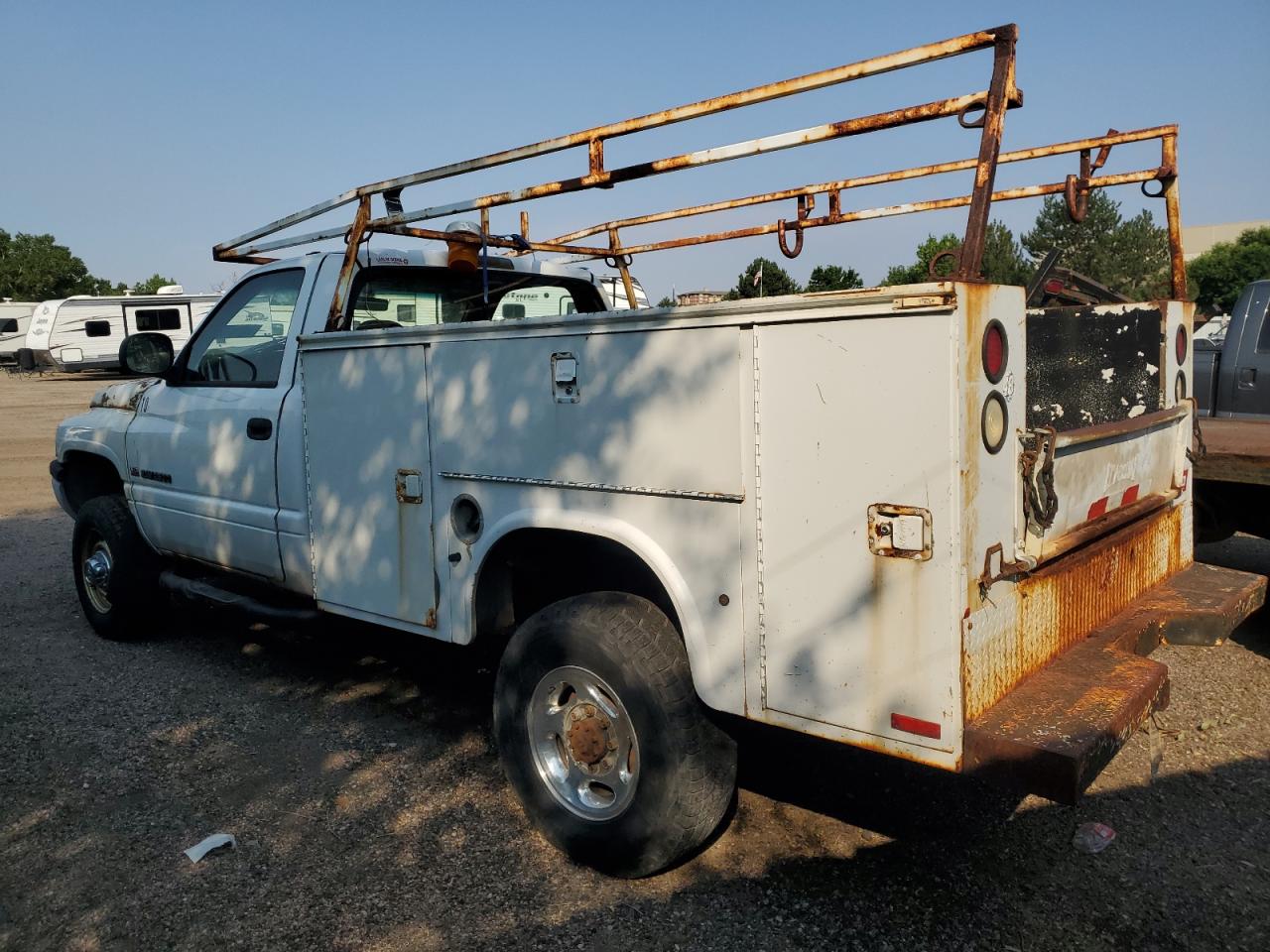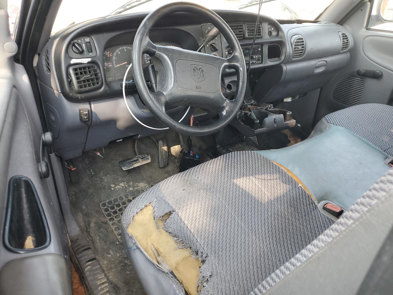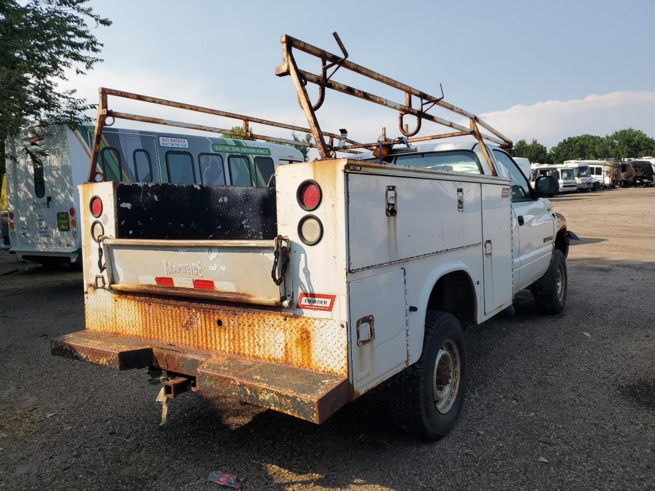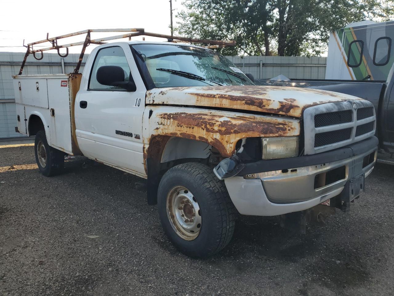 FairThe 2001 Dodge Ram 2500 is a white pickup truck with significant visible damage. The primary damage is mechanical, with noticeable rust on the body, especially on the hood and rear cargo area. The interior shows significant wear and tear. The lights and glasses appear to be in a degraded state.