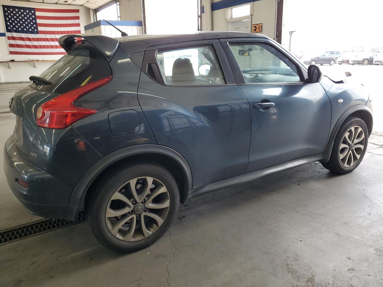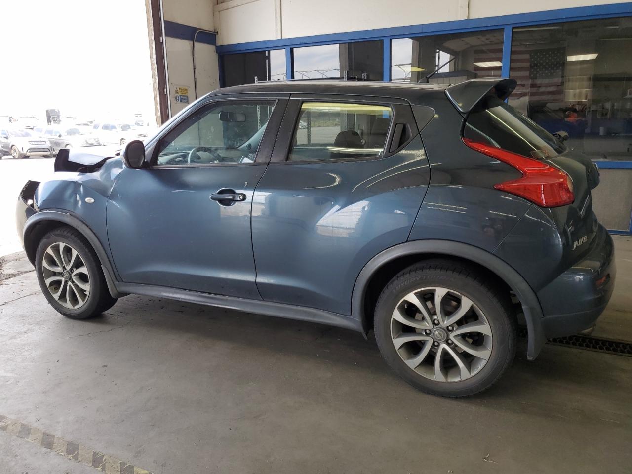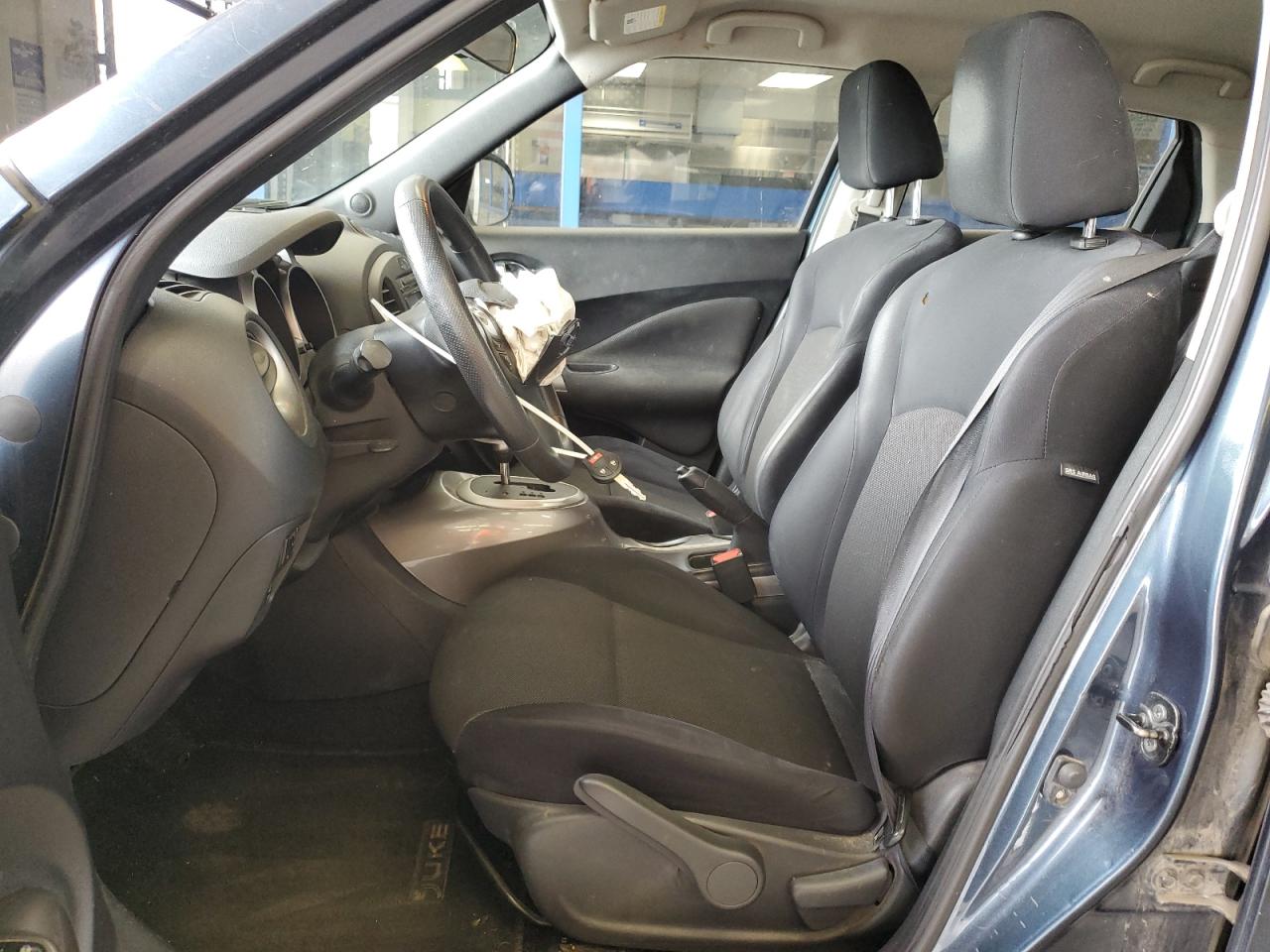 FairThe 2011 Nissan Juke S, blue in color, displays significant front-end damage, impacting its overall condition. The vehicle's exterior shows substantial damage, including deformation of body panels, especially at the front. Interior reveals airbag deployment and visible damage. The car is verified as run and drive.