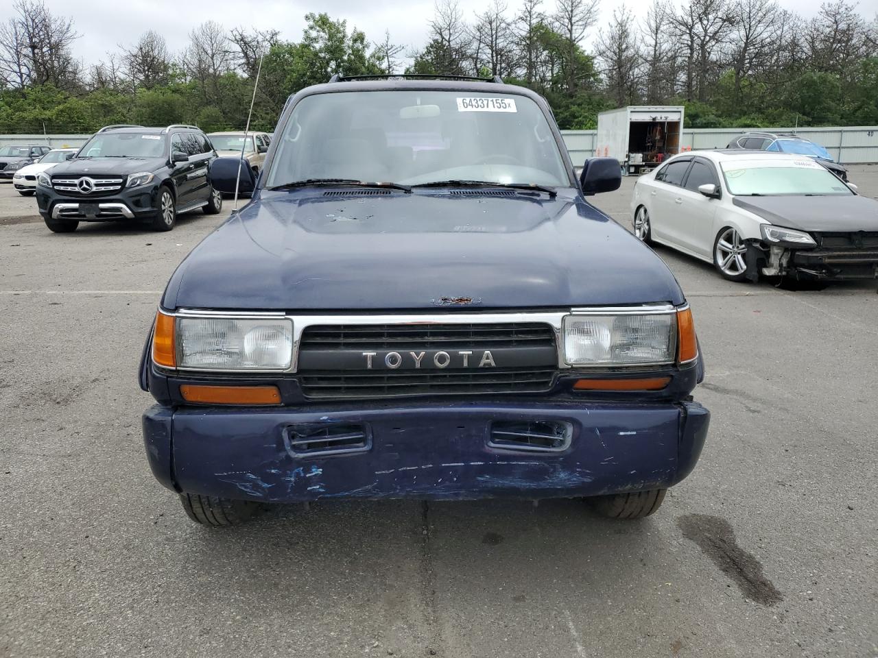 GoodThe 1991 Toyota Land Cruiser is a blue SUV, showcasing minor cosmetic damage, including dents and scratches. The vehicle is confirmed to run and drive. The overall exterior condition is rated as 'Good' due to body panel damage with no mechanical issues. The interior shows minor wear and tear. The wheels and lights appear to be in good condition. The vehicle's overall state is 'Good'.