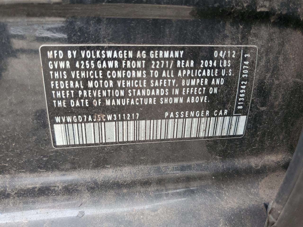 WVWGD7AJ5CW311217Final Bid