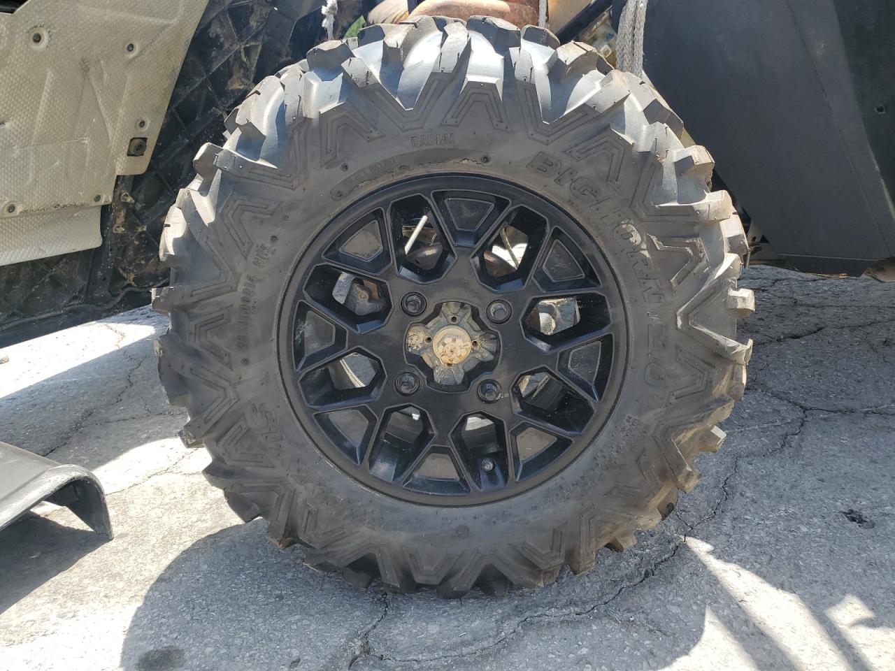 FairThe 2020 CAN-AM DEFENDER X is a two-tone UTV with damage. The primary damage is widespread, affecting multiple areas, while there are no secondary damages. The wheels appear to be in acceptable condition. The lights and glasses seem intact. The vehicle has a rugged design, suitable for off-road use. The interior shows signs of wear and potential damage.