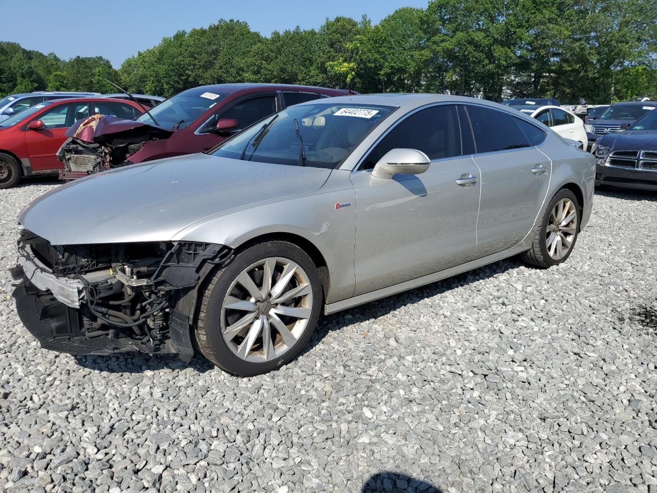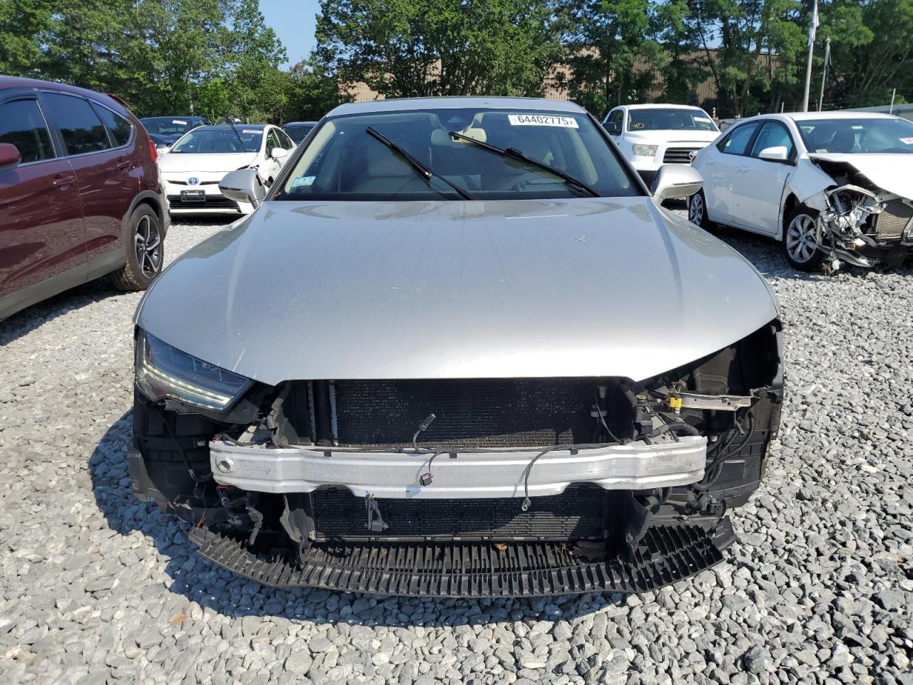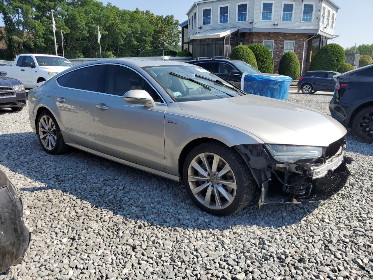 FairThis is a 2016 Audi A7 Prestige with front-end damage. The vehicle is gray. The car starts and drives. The front end has significant damage, including the bumper, lights, and potentially other components. The wheels and glasses appear to be in good condition. The interior shows signs of wear but is generally in good condition. The airbag status is unknown. This vehicle is categorized as Body damage. The overall state is Fair due to front-end damage.