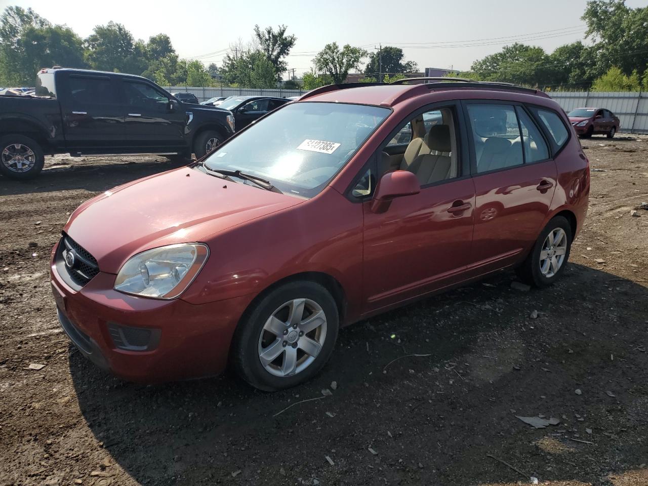 GoodThis is a red 2007 KIA RONDO BASE. The vehicle shows signs of normal wear. The car has a Run & Drive Verified status. The exterior presents with moderate visible damage, indicating a need for potential part replacements, but the car remains drivable. The wheels, lights and glasses appear to be in acceptable condition. Interior condition appears to be good with minor wear and tear. No airbag damage is visible. Overall, the vehicle is in decent condition, suitable for repair and use.