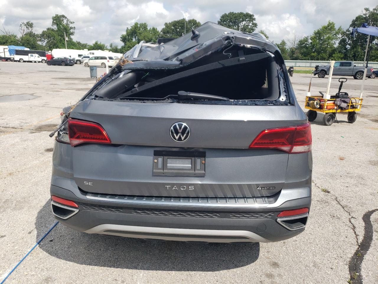 PoorThe 2022 Volkswagen Taos SE IQ has sustained extensive damage in a rollover collision. The vehicle is silver in color, and the start code is DEFAULT. The primary damage is a rollover, with no secondary damage reported. The exterior is severely compromised with significant body damage. The interior is extensively damaged, with deployed airbags and shattered glass throughout. The wheels appear intact, but the overall state of the vehicle is poor, requiring considerable repair. The vehicle is not drivable.